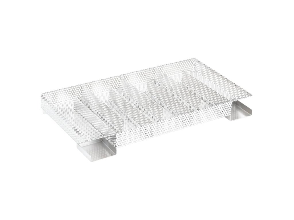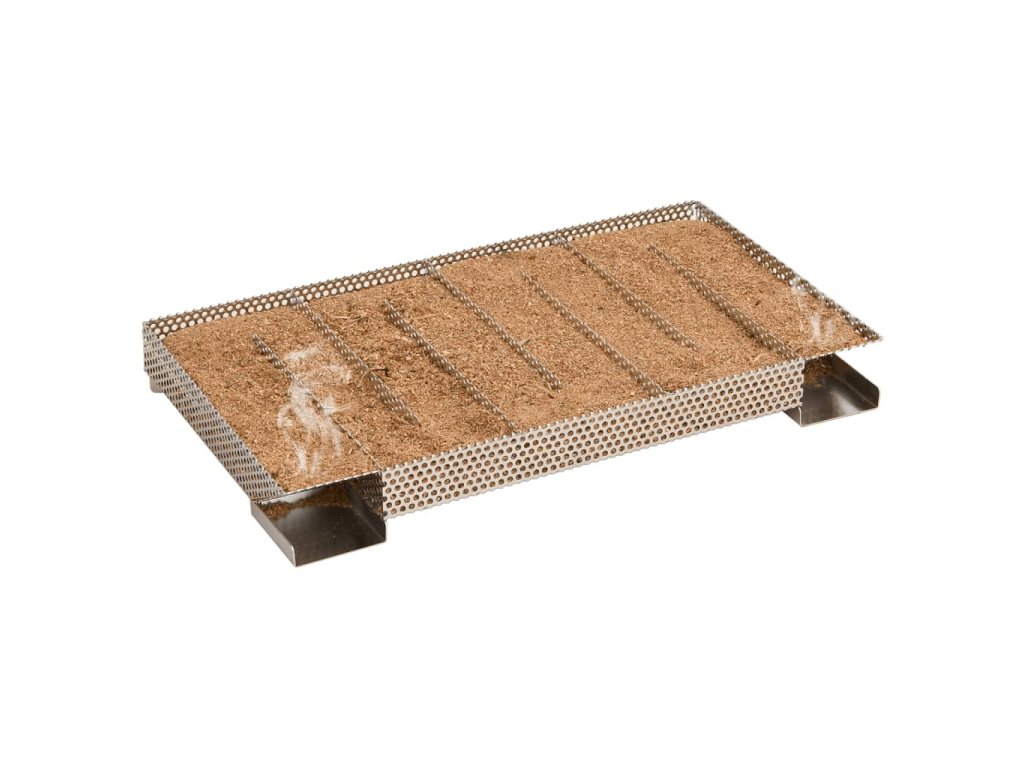 - Snadné použití: Stačí naplnit pilinami a zapálit čajovou svíčkou, dokud piliny nezačnou měnit barvu. Vyjměte čajovou svíčku a vložte generátor do udírny. Kompaktní obdélníková mřížka umožňuje rovnoměrné a pomalé hoření štěpků po dobu až 20 hodin.