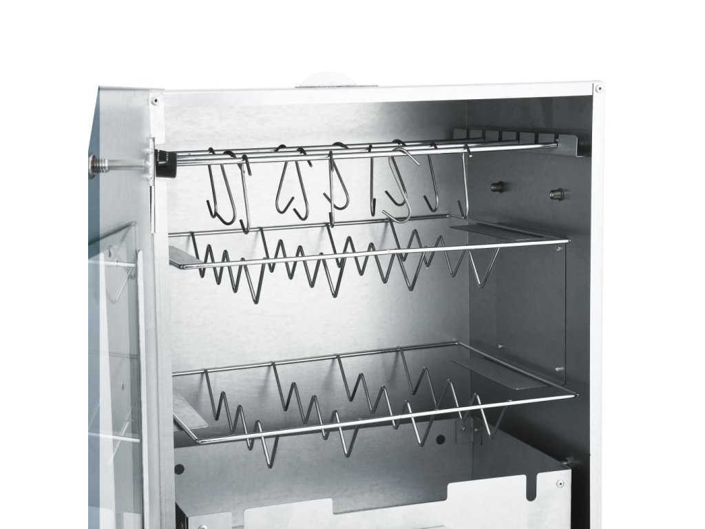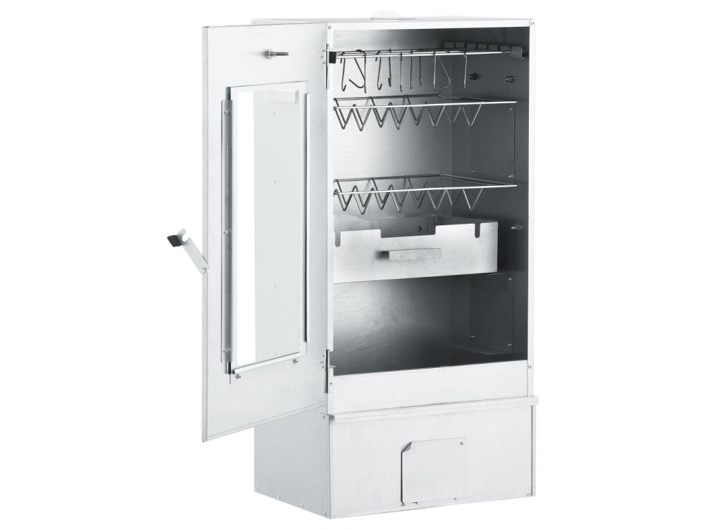 - Dostatek prostoru na uzení: Venkovní udírna poskytuje dostatek prostoru pro uzení masa, ryb, klobás apod. Pomocí přiložených háků ve tvaru písmene S a roštů bude grilování pohodlnější.