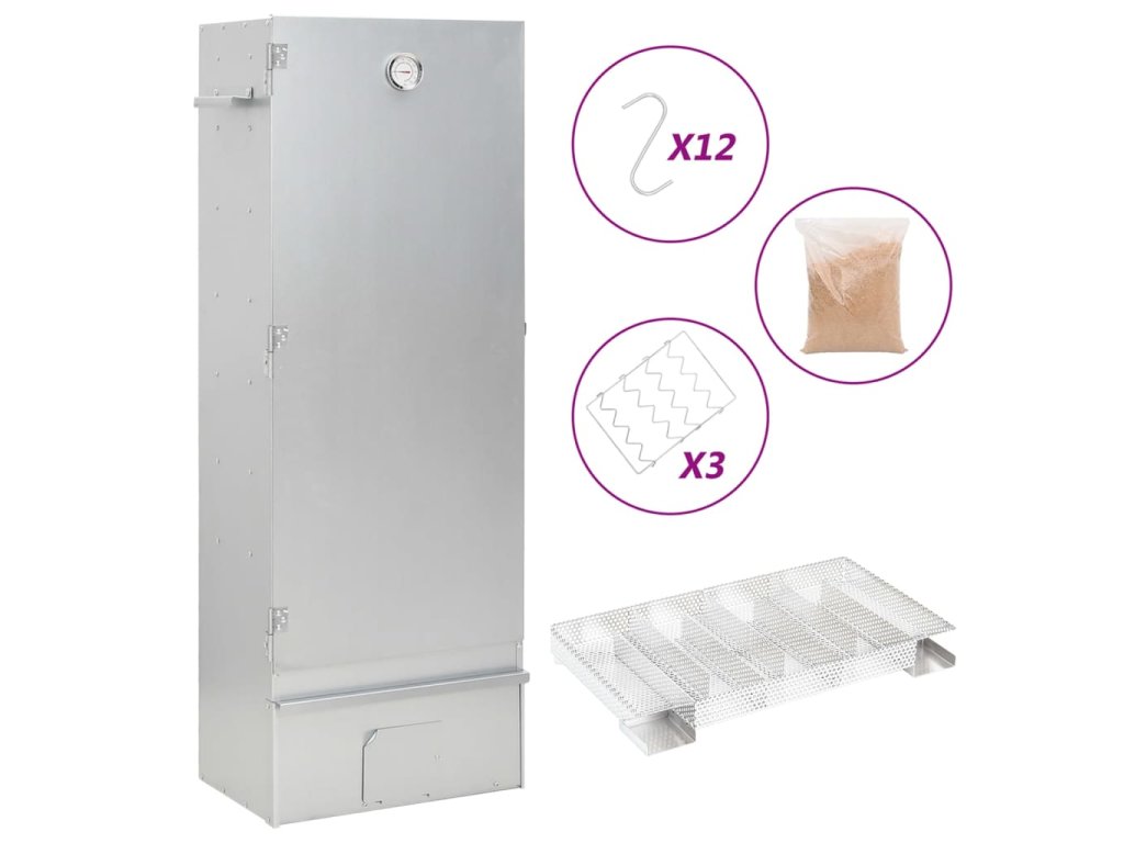- Dostatek prostoru na uzení: Venkovní udírna poskytuje dostatek prostoru pro uzení masa, ryb, klobás apod. Pomocí přiložených háků ve tvaru písmene S a roštů bude grilování pohodlnější.