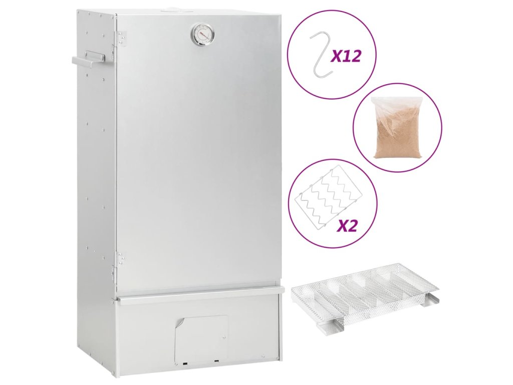 - Dostatek prostoru na uzení: Venkovní udírna poskytuje dostatek prostoru pro uzení masa, ryb, klobás apod. Pomocí přiložených háků ve tvaru písmene S a roštů bude grilování pohodlnější.
