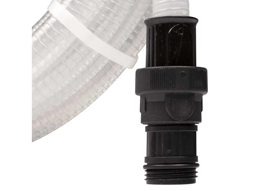 - S filtrem: Hadice na vodu je vybavena patním ventilem a sacím košem, které zabraňují proniknutí větších nečistot.