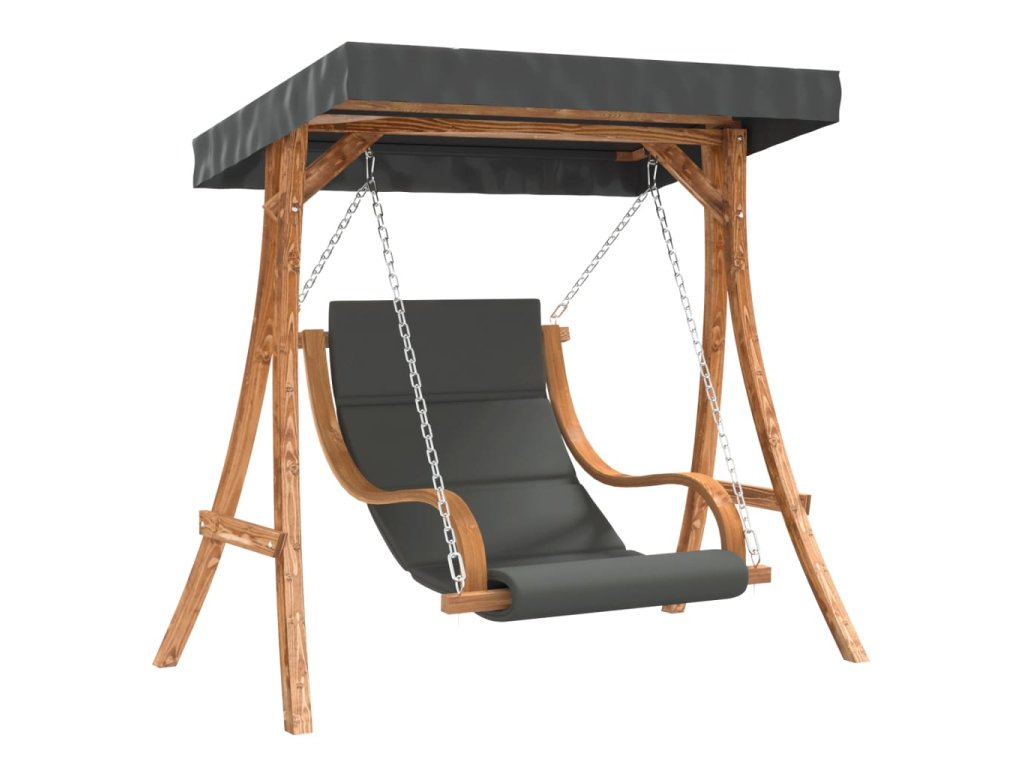 Toto dřevěné houpací závěsné křeslo s poduškou a stříškou je skvělá volba, pokud si chcete vytvořit místo k odpočinku a zábavě ve vašem venkovním prostoru.