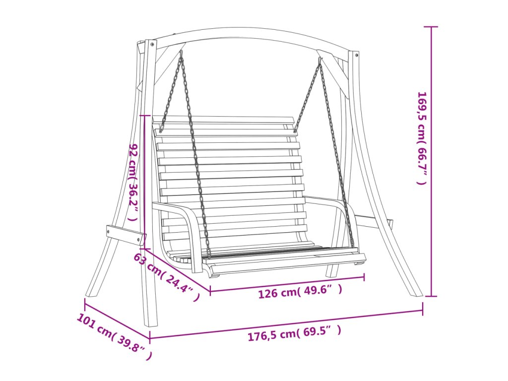 - Rozměry houpačky: 126 x 63 x 92 cm (Š x H x V)