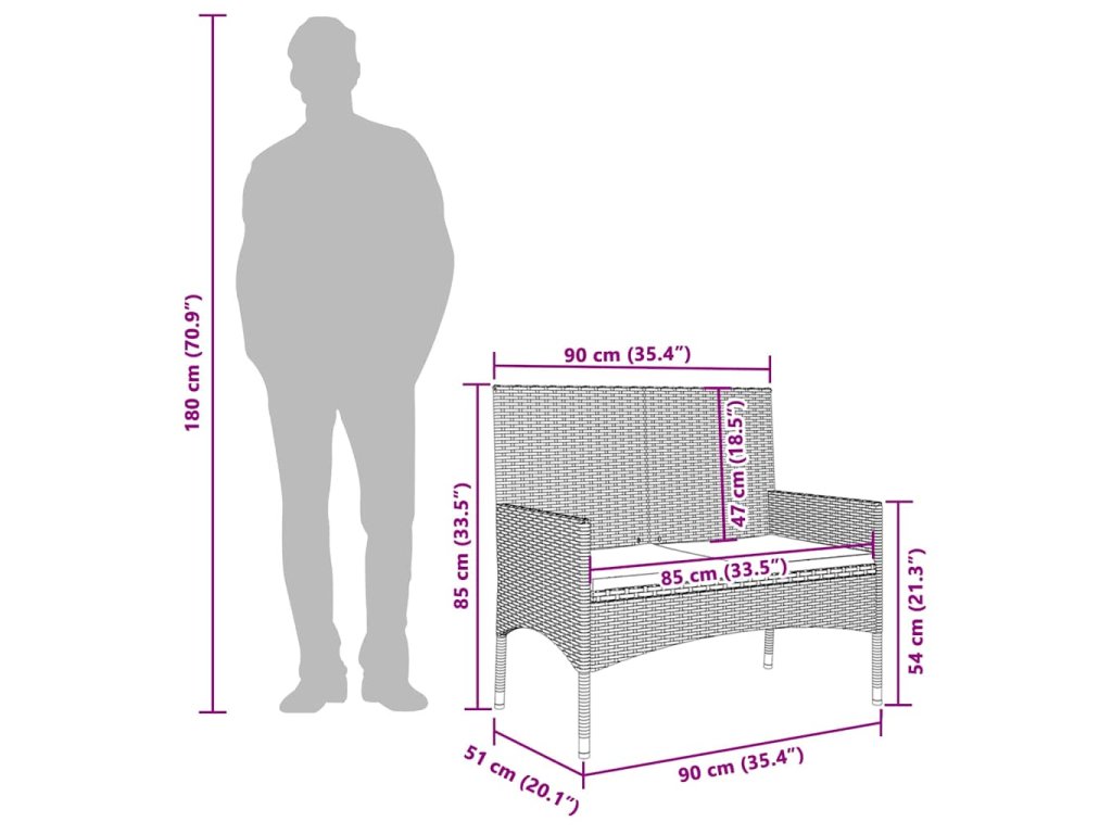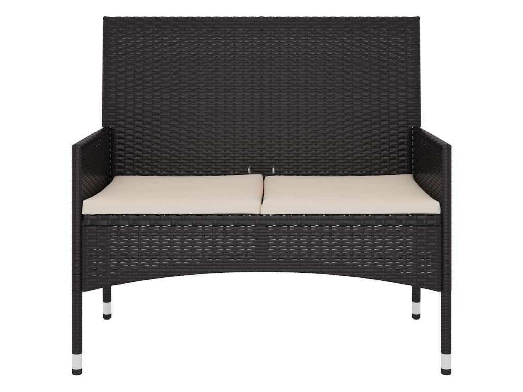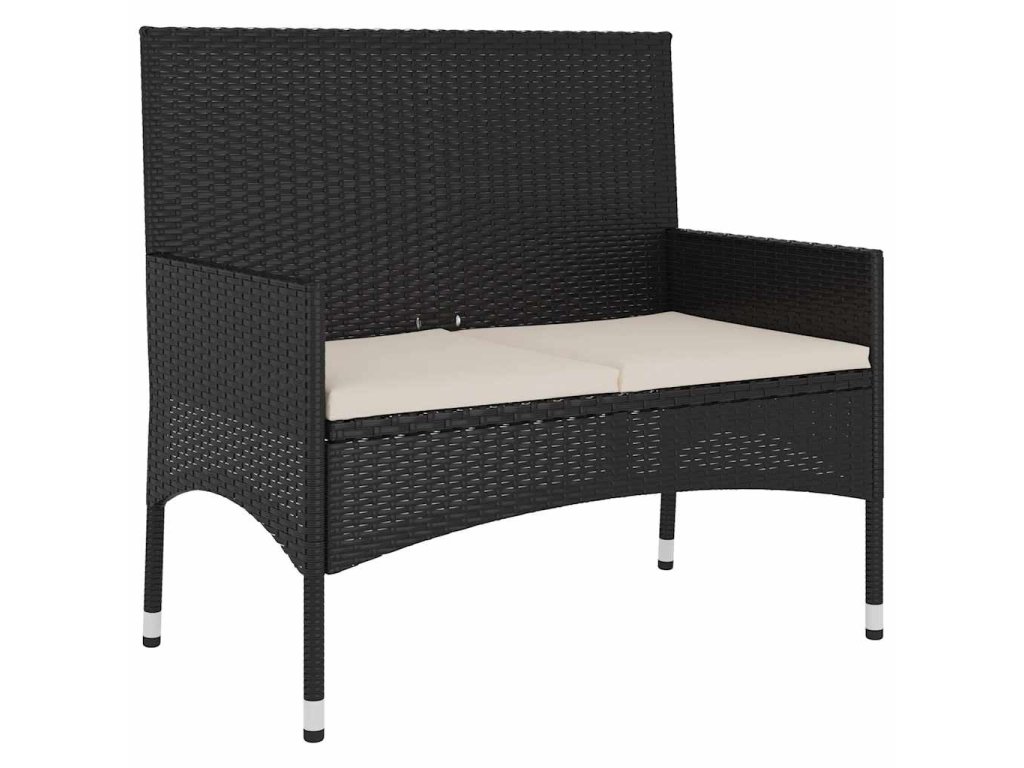 2místná zahradní lavice s poduškami černá polyratan 319488