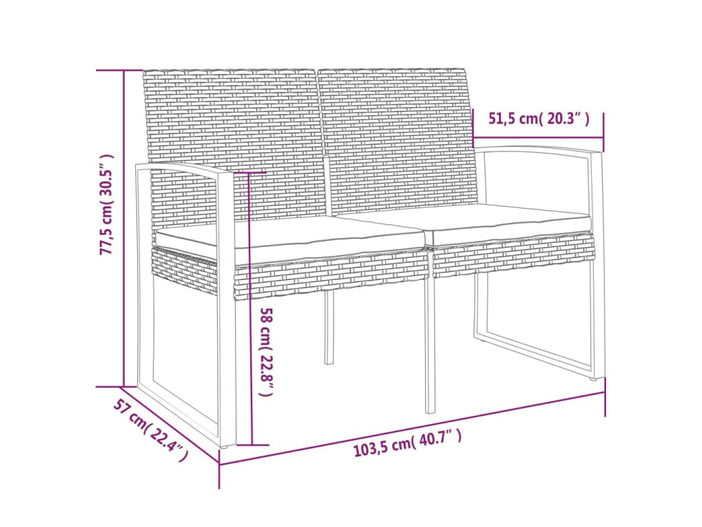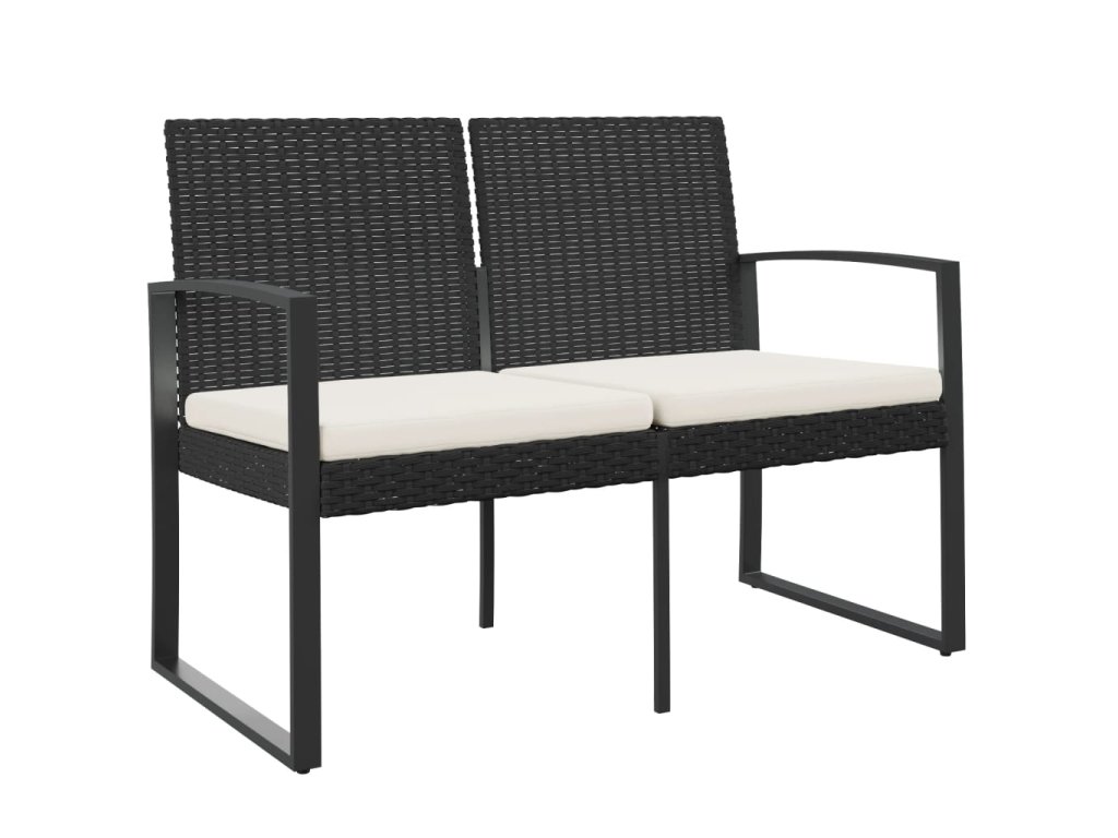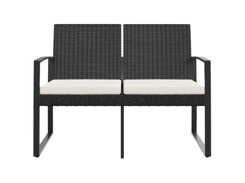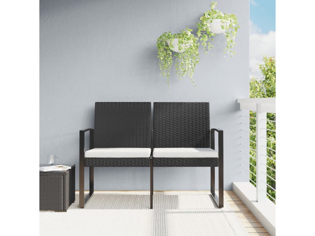 2místná zahradní lavice s poduškami černá PP ratan 360209