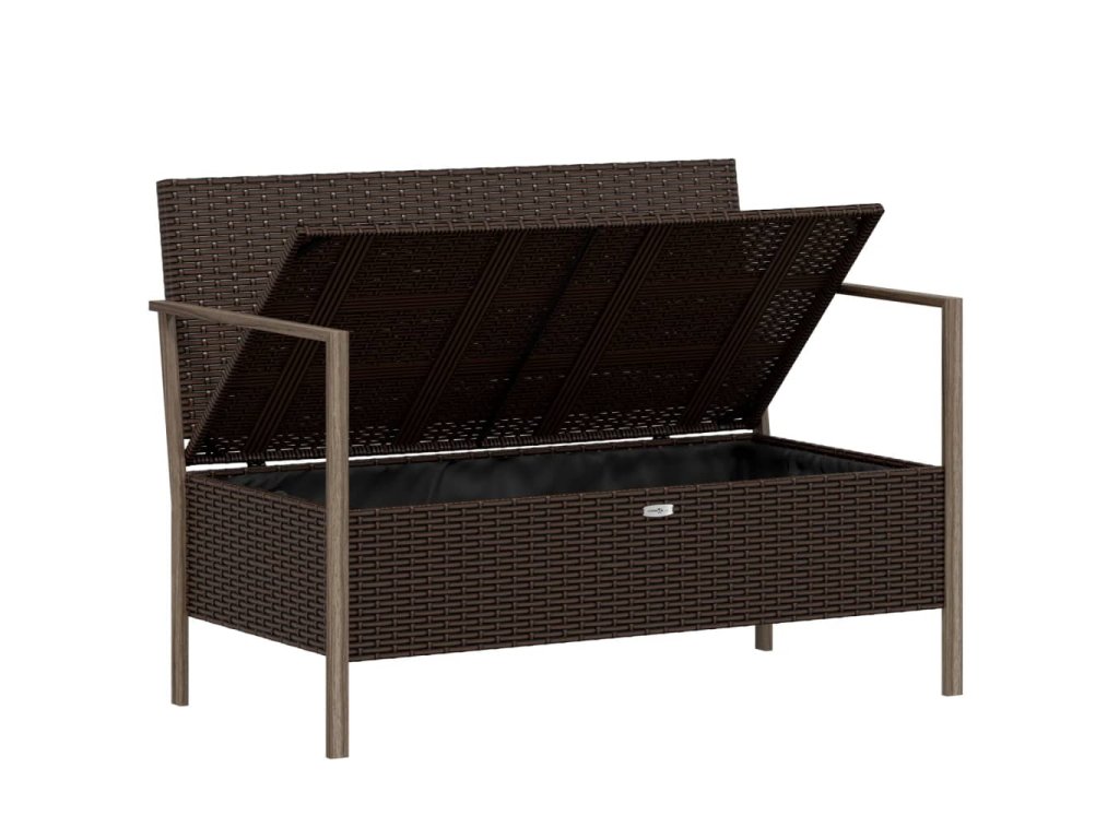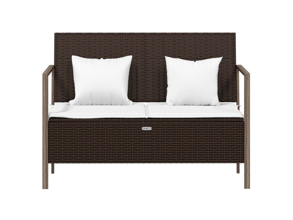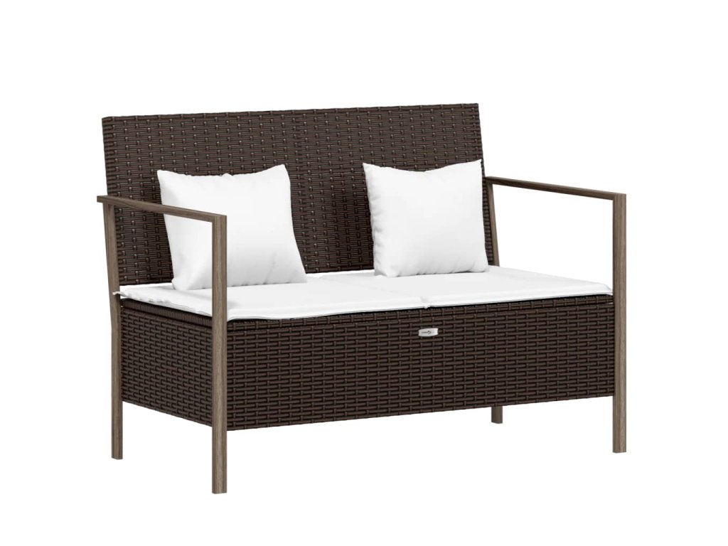 2místná zahradní lavice s poduškami hnědá polyratan 364113