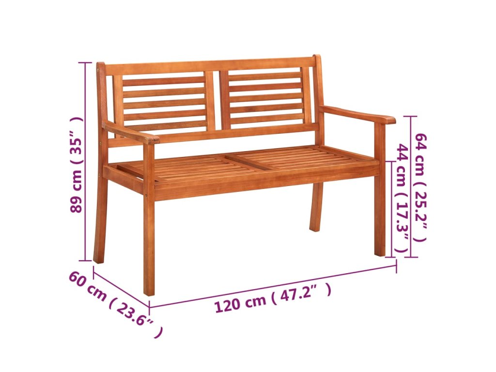 2místná zahradní lavice s poduškou 120 cm masivní eukalyptus 3060971