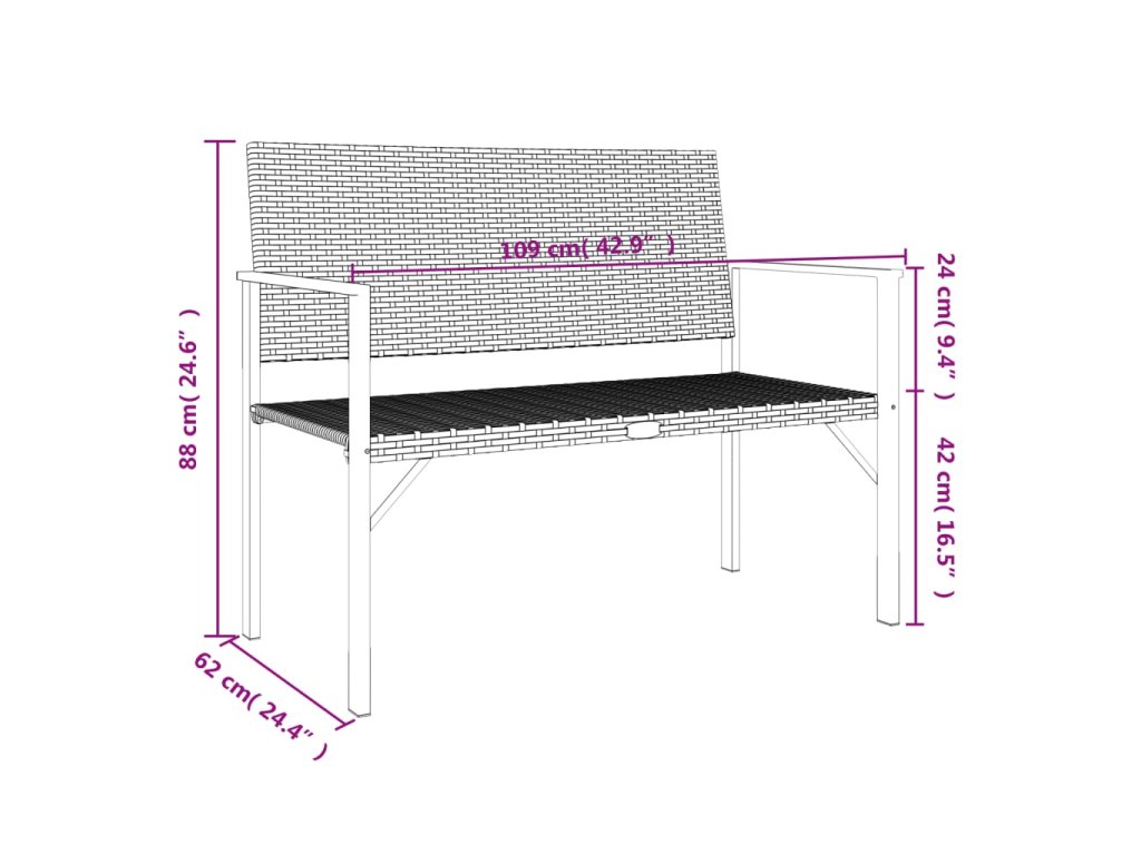 - Pohodlné sezení: Venkovní lavice je navržena s opěradlem a područkami, aby vám nabídla pohodlné posezení.