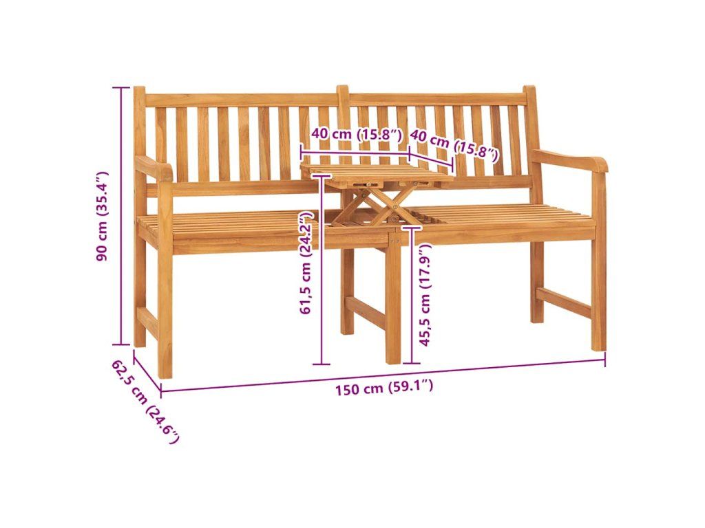 Tato zahradní lavice má dvě područky a lamely sedáku a opěradla poskytují skvělou oporu a pohodlí při sezení. Prostřední sedák lze snadno přeměnit na praktický čajový stolek. Jeho výsuvná konstrukce se hodí pro odkládání nápojů, telefonu a dalších drobných předmětů. Dopřejte si vytoužený relax na této krásné lavici!