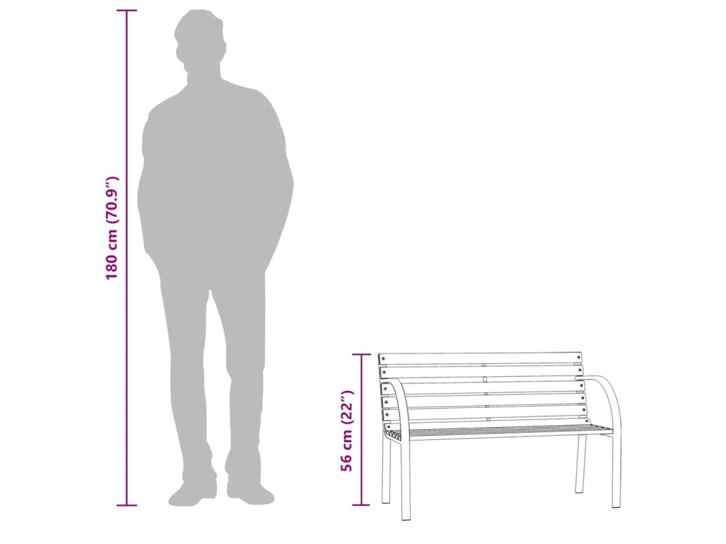 Tato dřevěná zahradní lavička bude ideálním doplňkem vaší zahrady či jiného venkovního prostoru. Venkovní lavička s ocelovým rámem vnese čistý a elegantní styl kamkoli, kam ji umístíte.