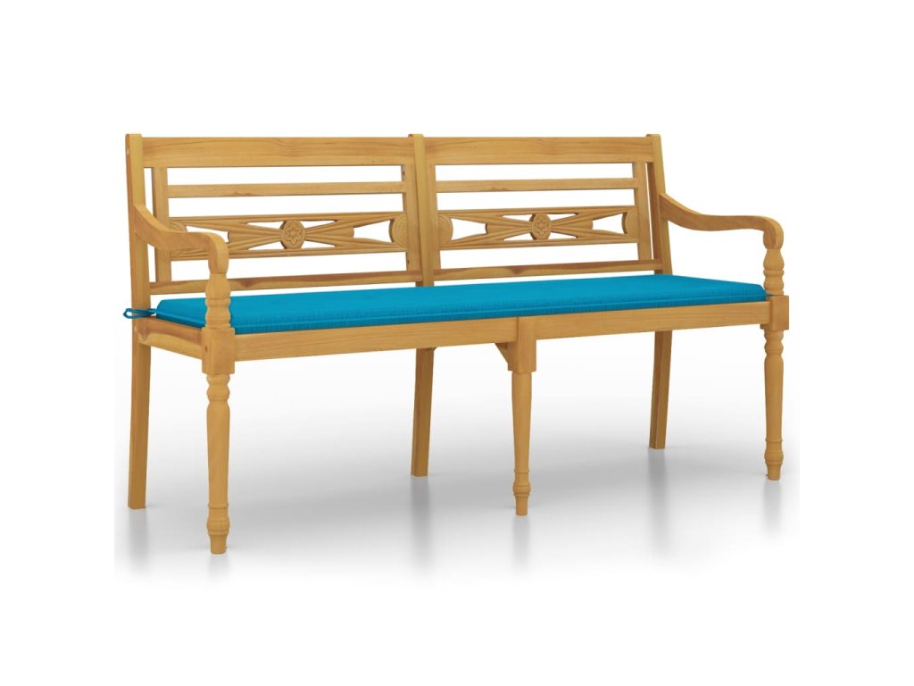 Lavice Batavia s modrou poduškou 150 cm masivní teakové dřevo 3100830