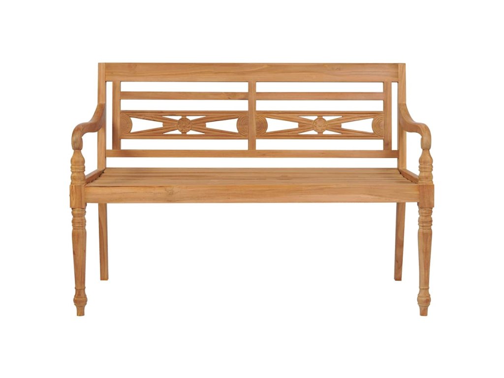 Lavice Batavia s šedou károvanou poduškou 120 cm masivní teak 3062168
