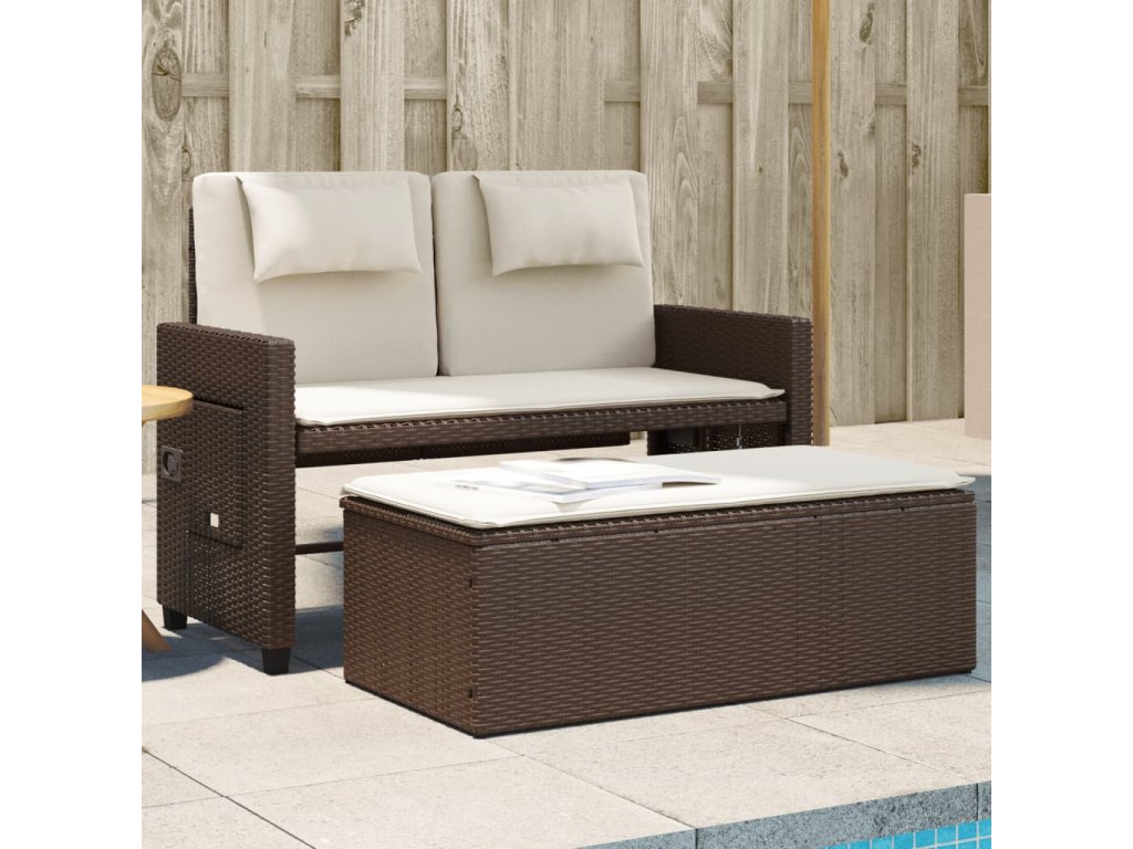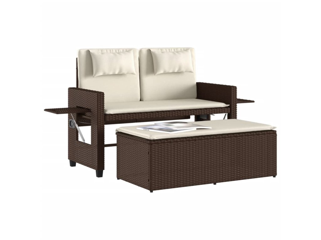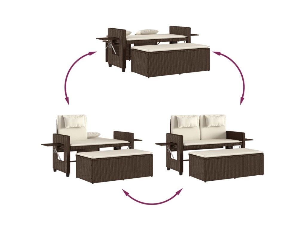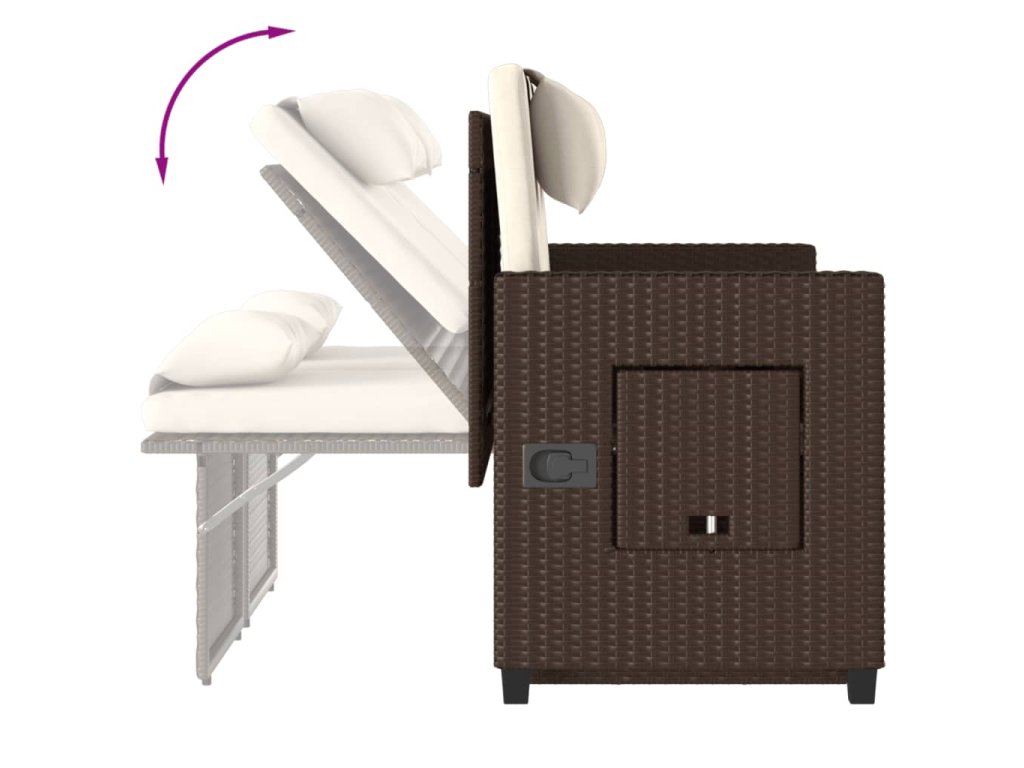 Polohovací zahradní lavice s poduškami hnědá polyratan 365818