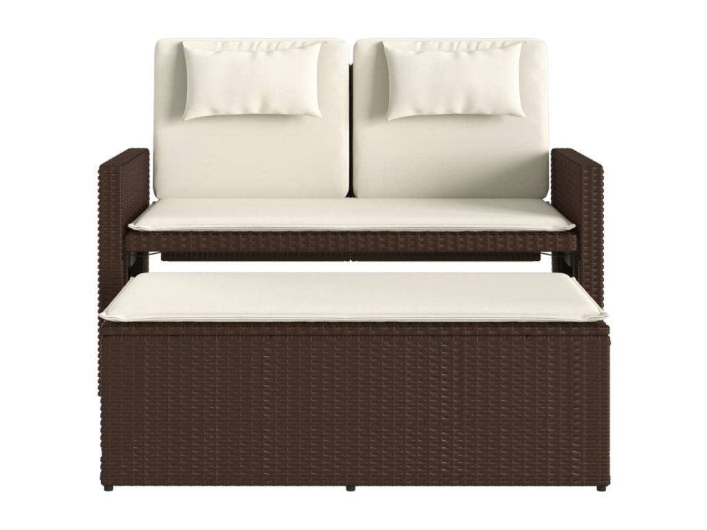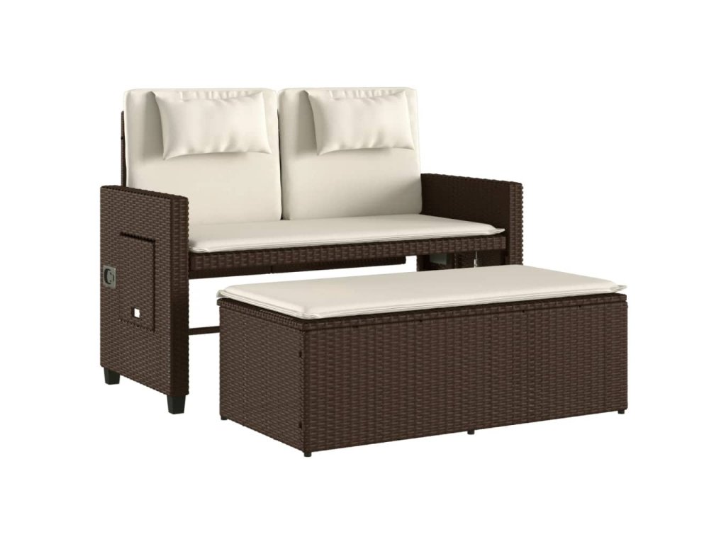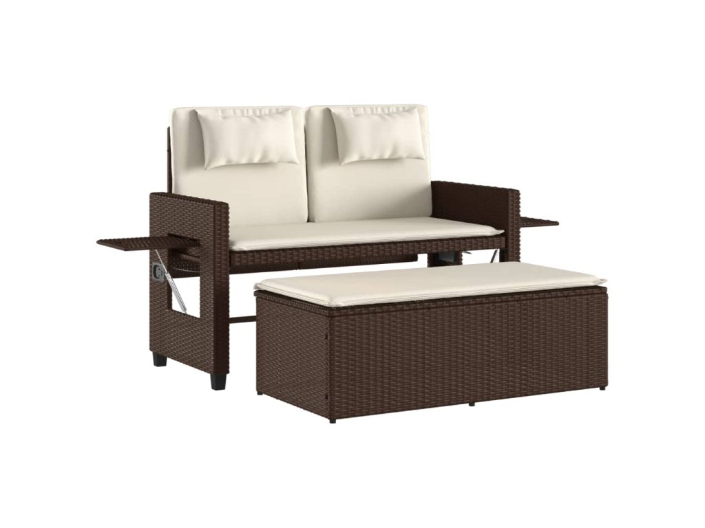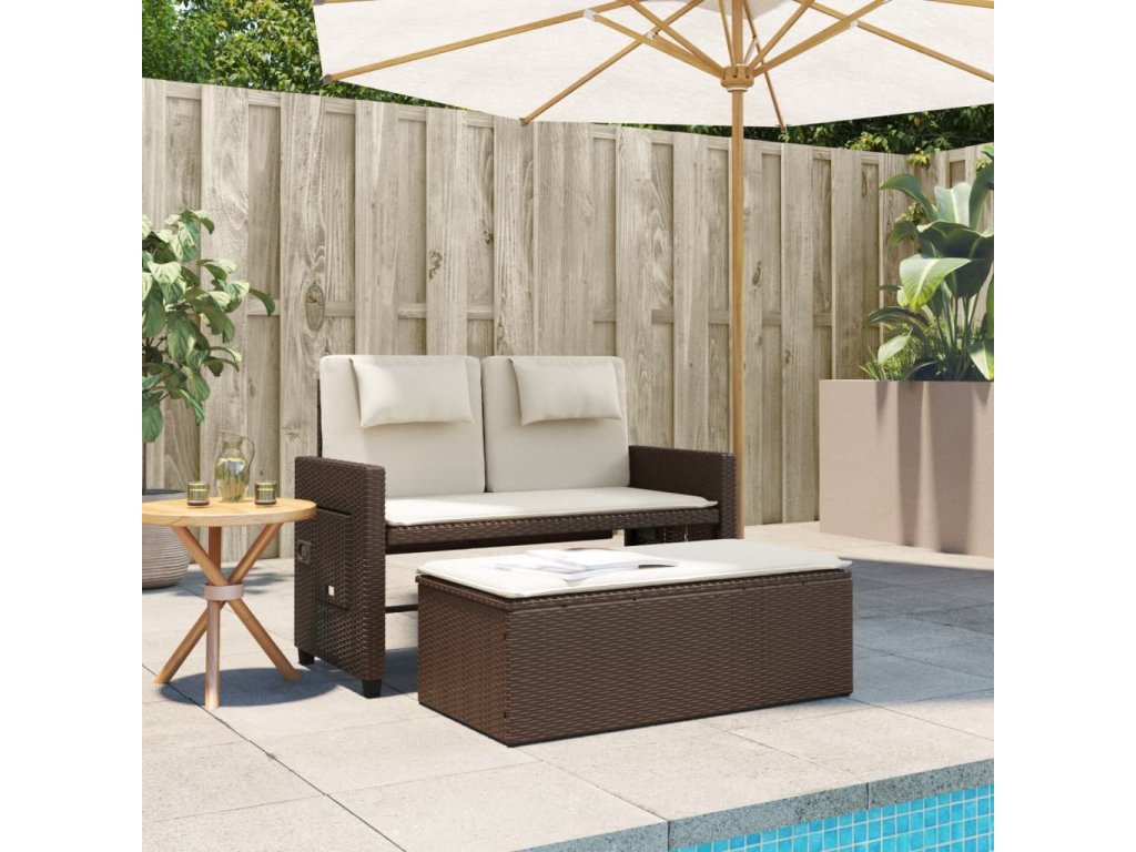 Polohovací zahradní lavice s poduškami hnědá polyratan 365818