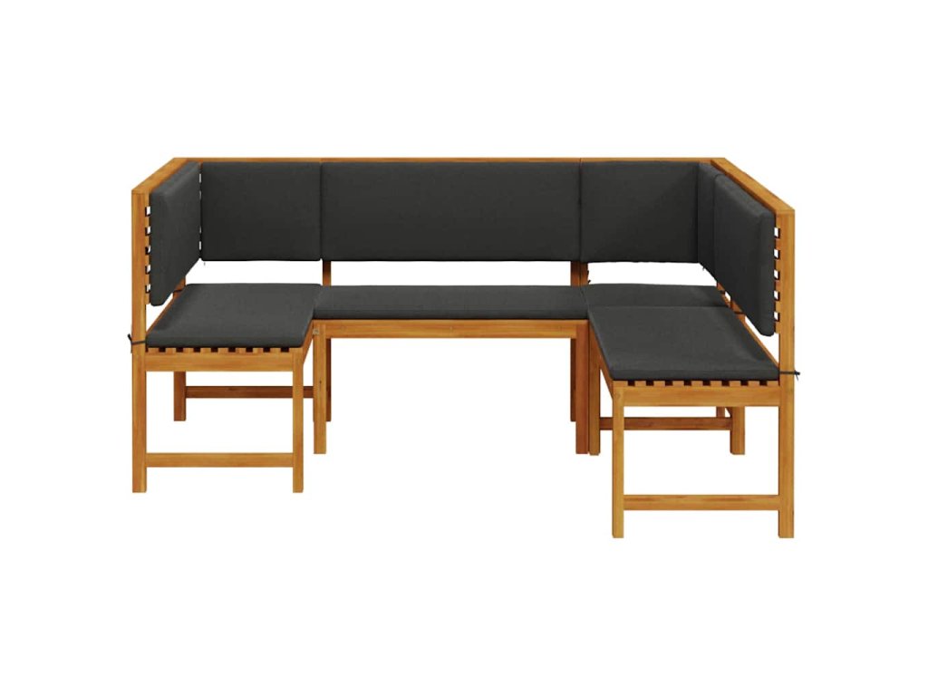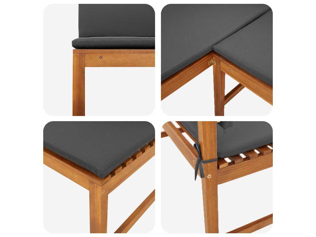 - Materiál: Tato sada lavic je vyrobená z odolného masivního akáciového dřeva, které je známé svojí pevností a odolností vůči počasí. Robustní rám poskytuje spolehlivou oporu a přidává přírodní atmosféru vašemu venkovnímu prostoru.