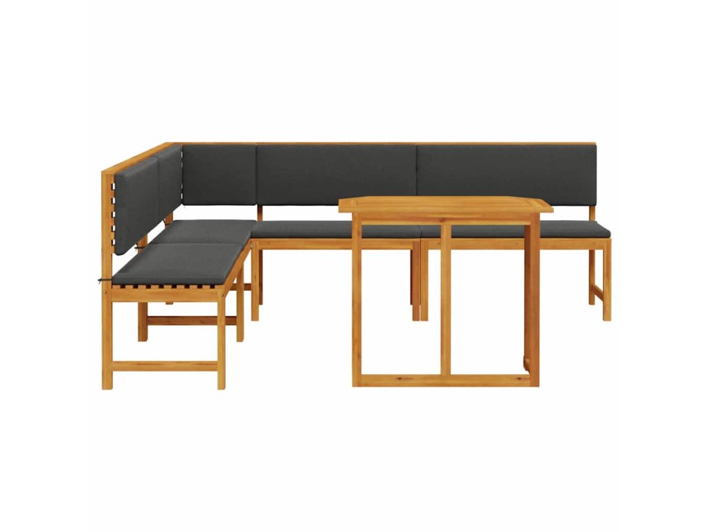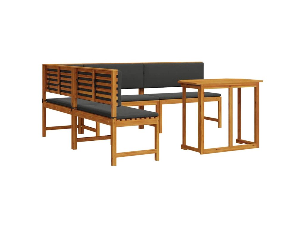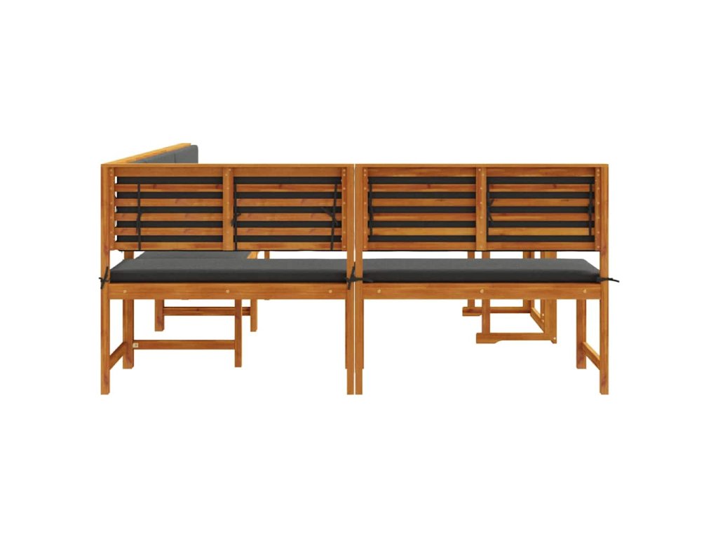 - Materiál: Tato sada lavic je vyrobená z odolného masivního akáciového dřeva, které je známé svojí pevností a odolností vůči počasí. Robustní rám poskytuje spolehlivou oporu a přidává přírodní atmosféru vašemu venkovnímu prostoru.
