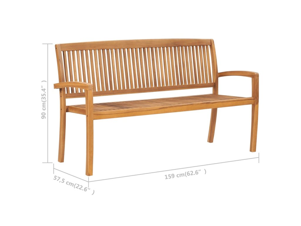 Stohovatelná zahradní lavice s poduškou 159 cm masivní teak 3063331