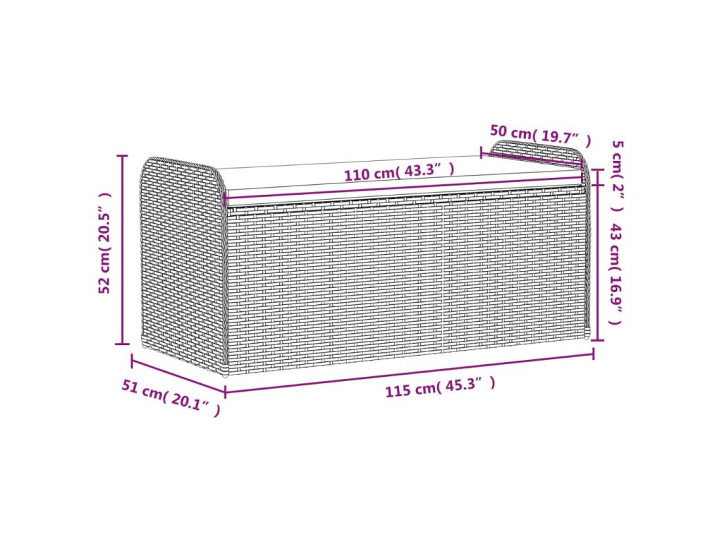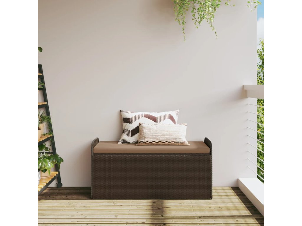 Úložná lavice s poduškou hnědá 115 x 51 x 52 cm polyratan 365729