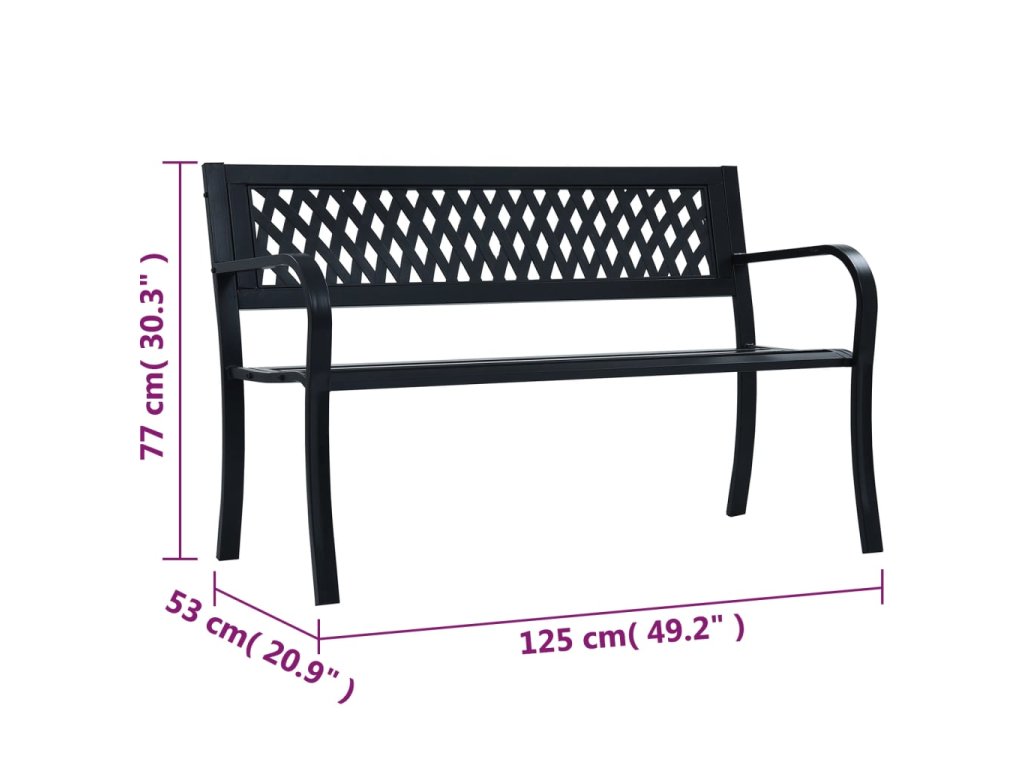 Lavička je vyrobená z vysoce kvalitní oceli a má plastové opěradlo s mřížovaným zdobením. Výborně odolává klimatickým vlivům a má dlouhou životnost. A její nadčasový design navíc stylovým způsobem oživí vaši zahradu nebo terasu.