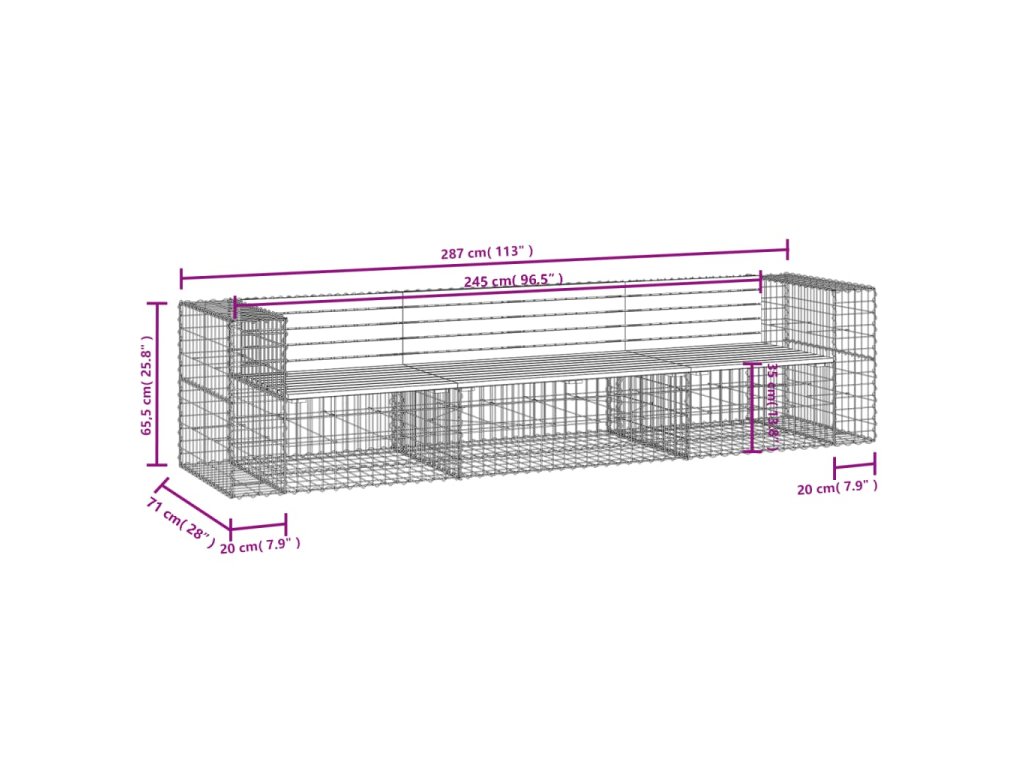 Zahradní lavice gabionový design 287x71x65,5cm masivní borovice 3196251