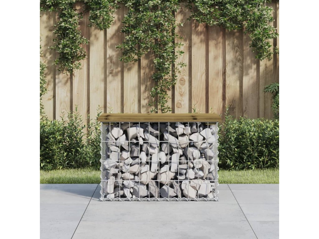 - Robustní a stabilní základna: Tato venkovní lavice je vybavena základnou z pozinkovaného ocelového gabionového koše, který je navržen tak, aby jej bylo možné naplnit kameny a štěrkem pro atraktivnější vzhled. Mřížku gabionového koše tvoří podélné a svislé drátky, které jsou navíc v každém spoji svařené pro lepší stabilitu.