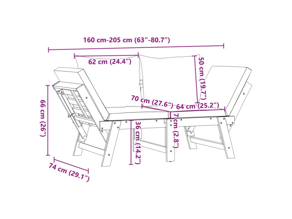 Zahradní lavice s poduškami 2 v 1 masivní akáciové dřevo 367579