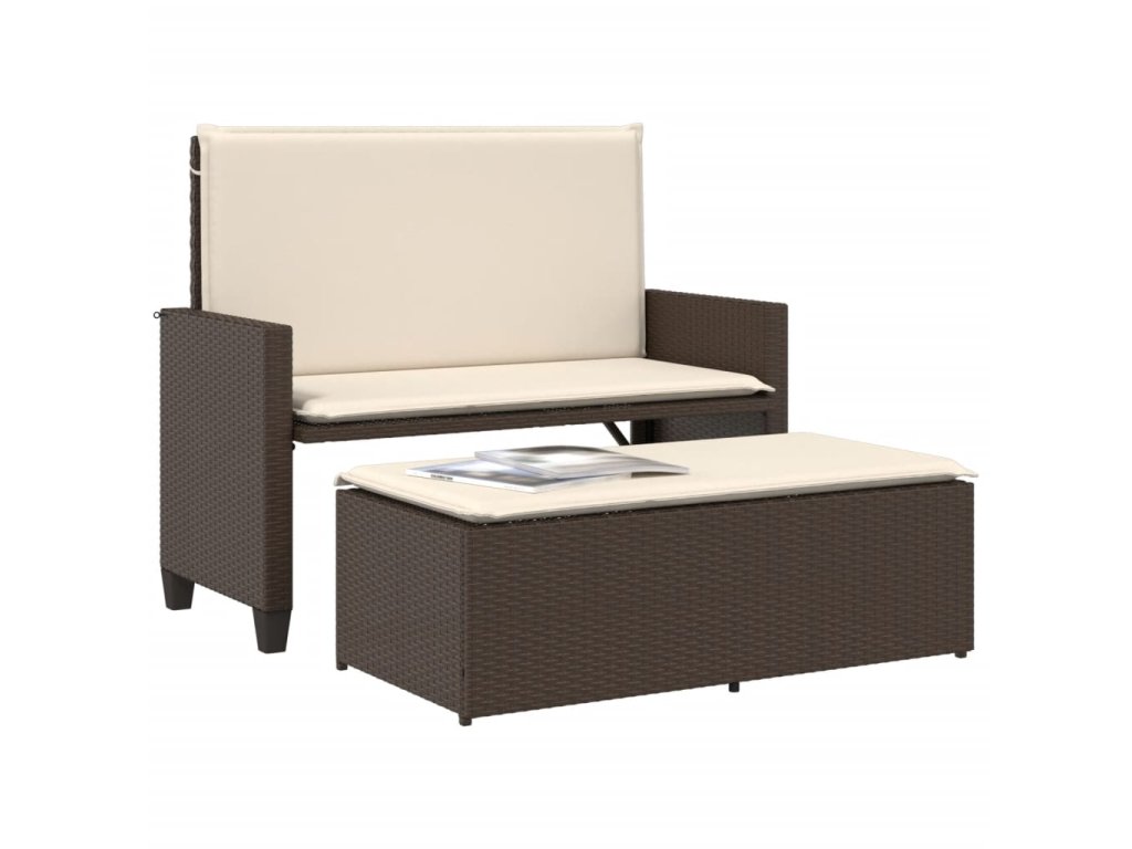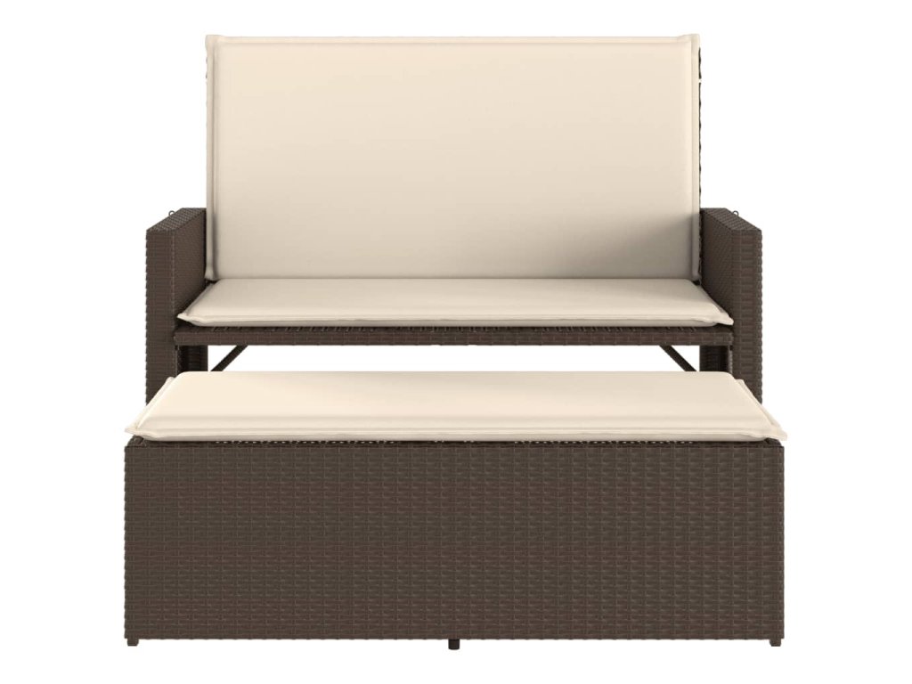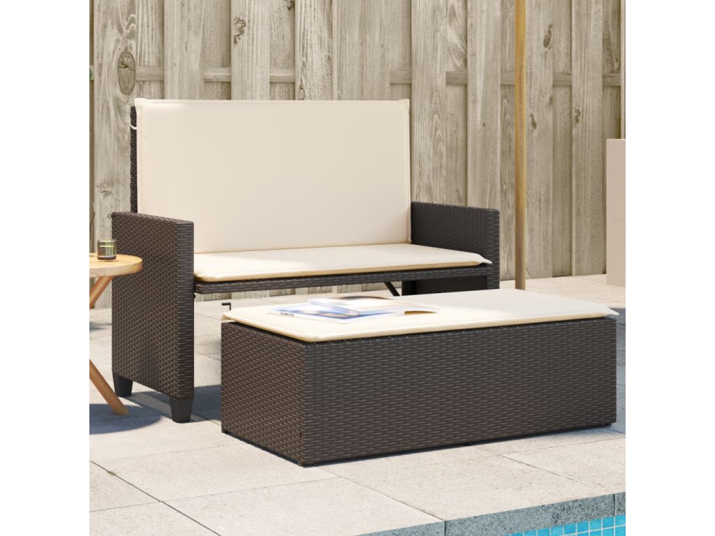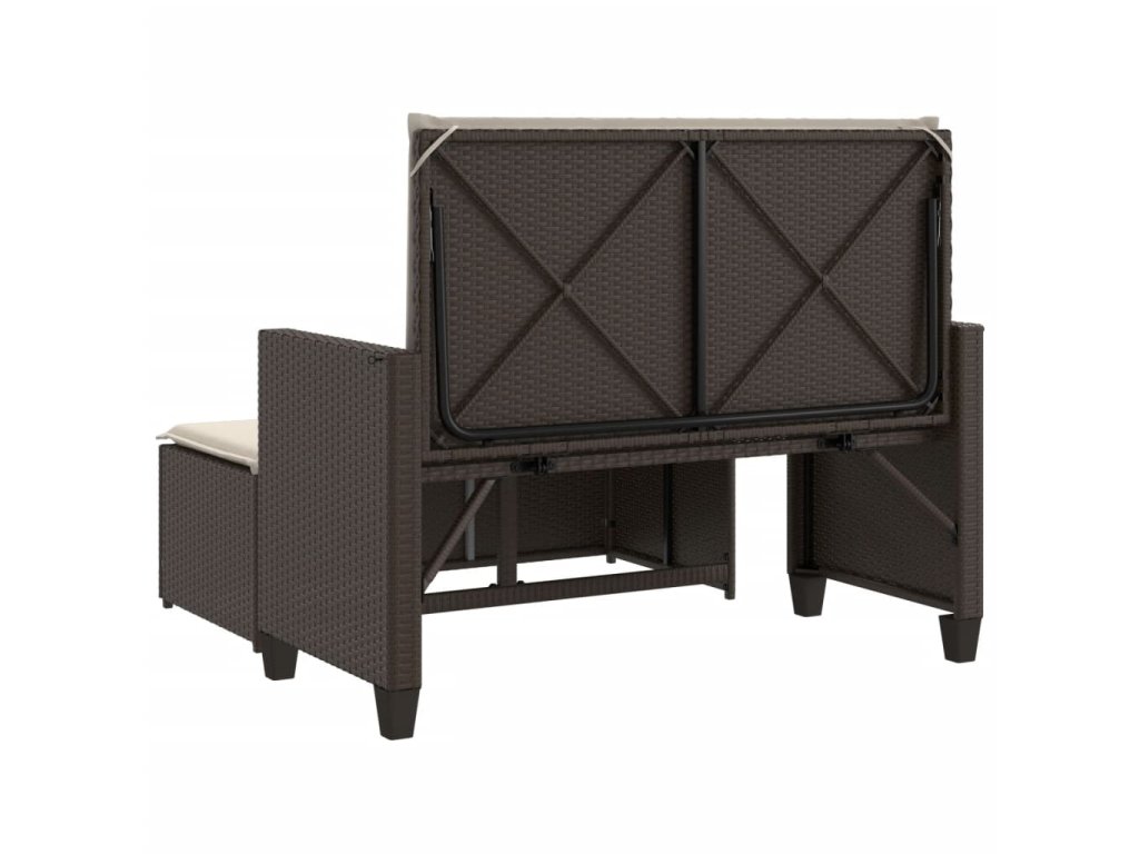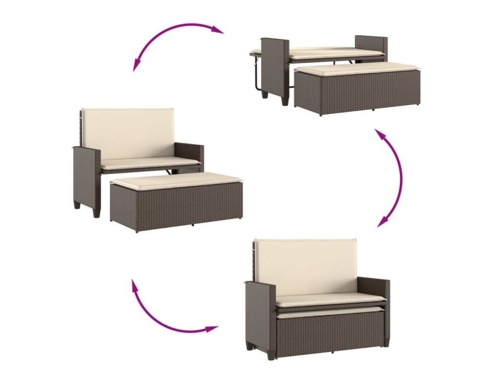 Zahradní lavice s poduškami a podnožkou hnědá polyratan 368408