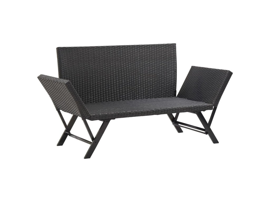 Zahradní lavice s poduškami černá 176 cm polyratan 317181