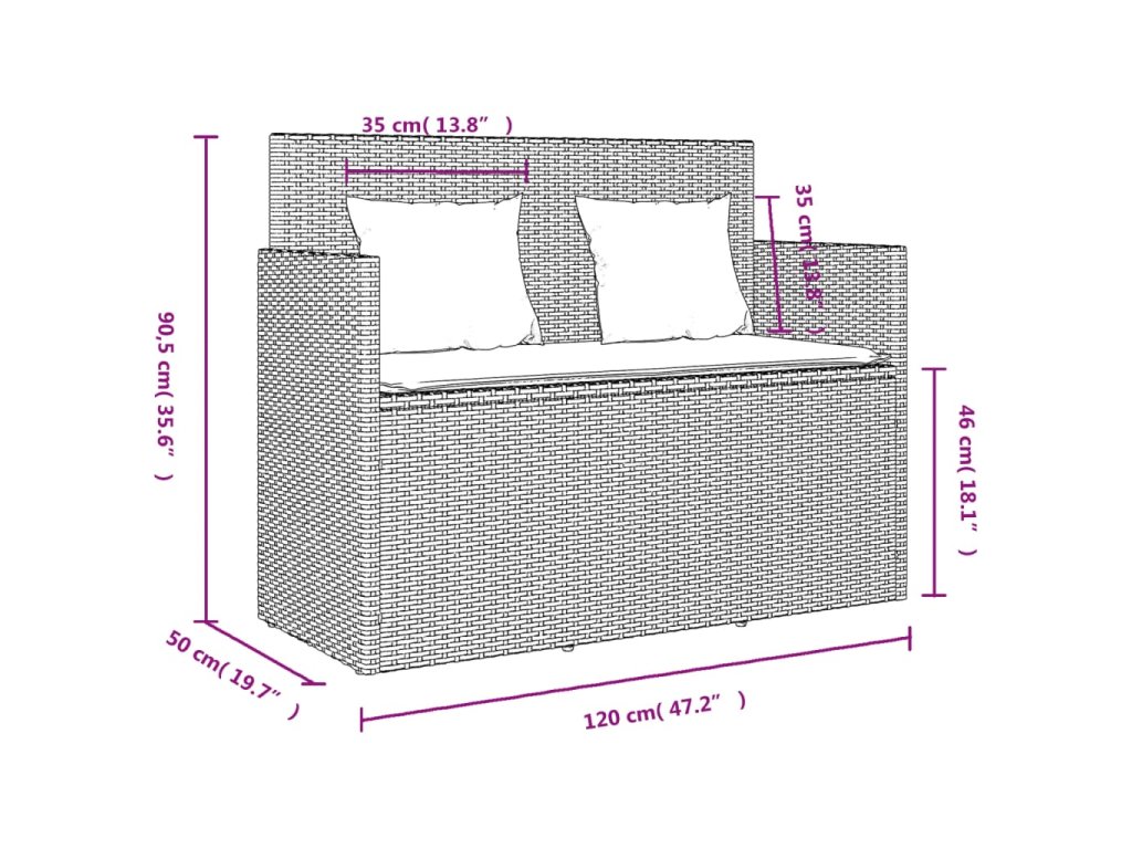 - Úložný prostor s voděodolným vakem: Zahradní nábytek má úložný prostor pod sedákem, který je opatřen voděodolnou vložkou a poslouží vám k ukládání podušek, hraček a dalších věcí. Vnitřní vak lze bezpečně připevnit k venkovnímu nábytku pomocí suchého zipu, což zaručí větší stabilitu.