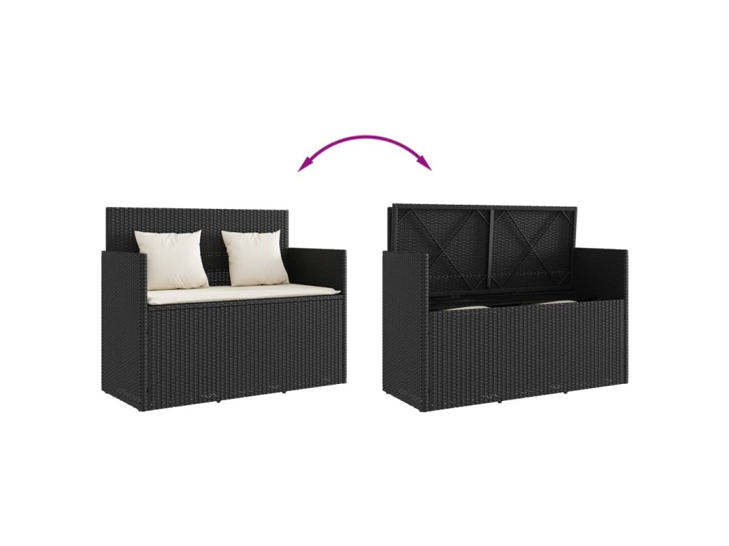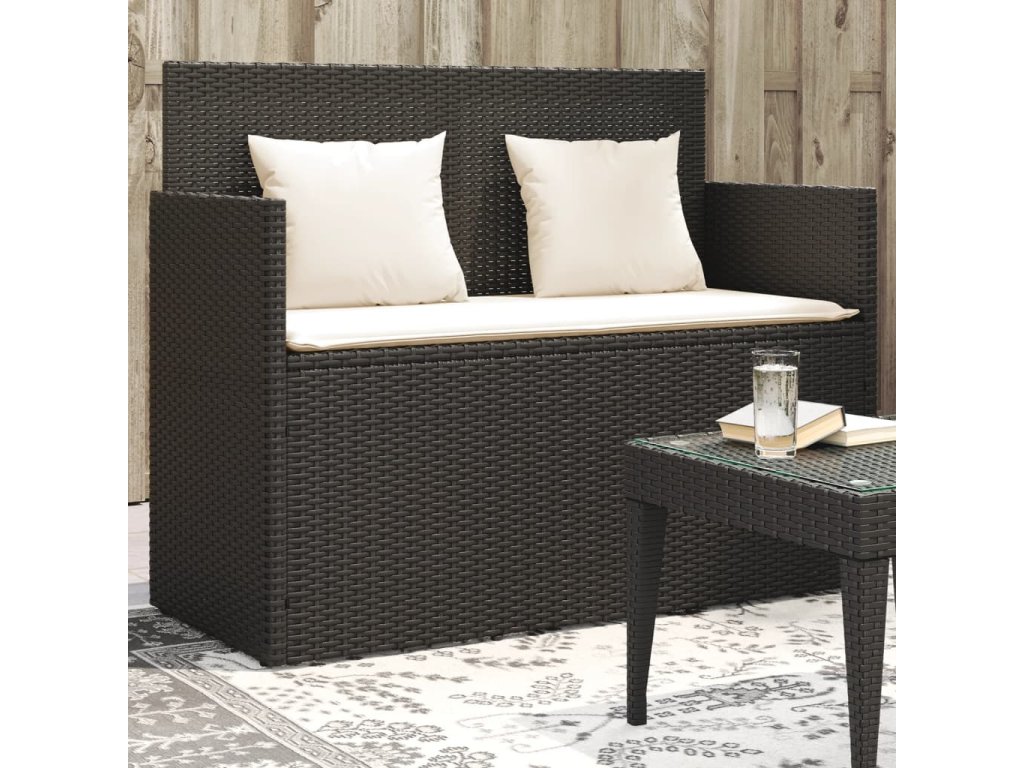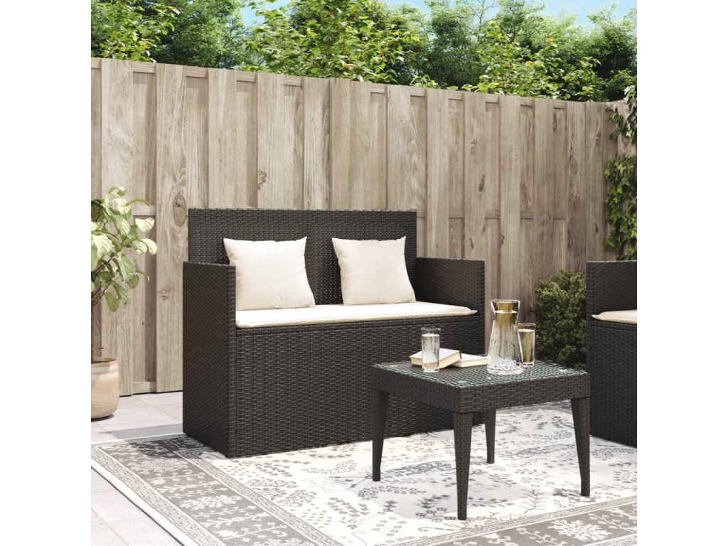 Zahradní lavice s poduškami černá polyratan 365760