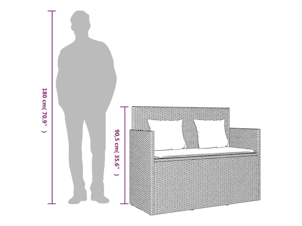 Zahradní lavice s poduškami hnědá polyratan 365762