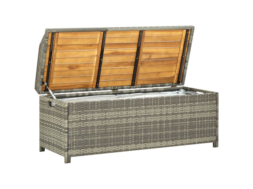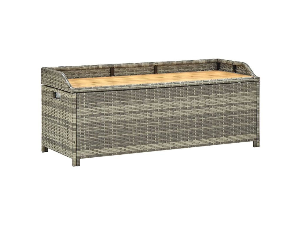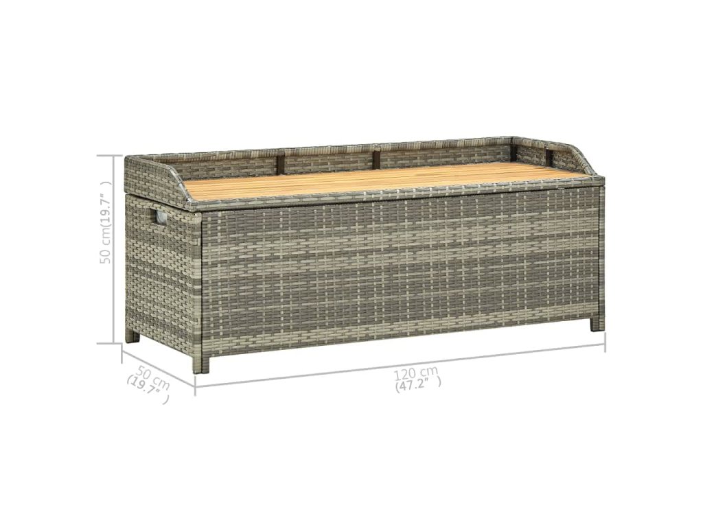 Zahradní lavice s úložným prostorem 120 cm polyratan šedá 46481