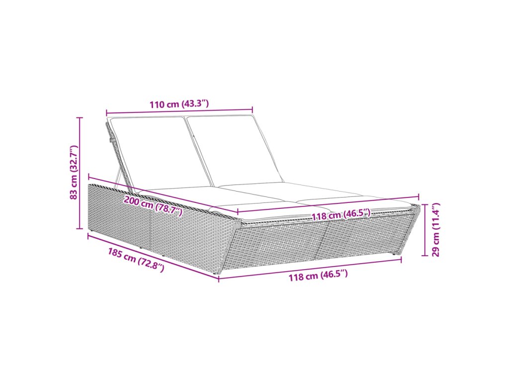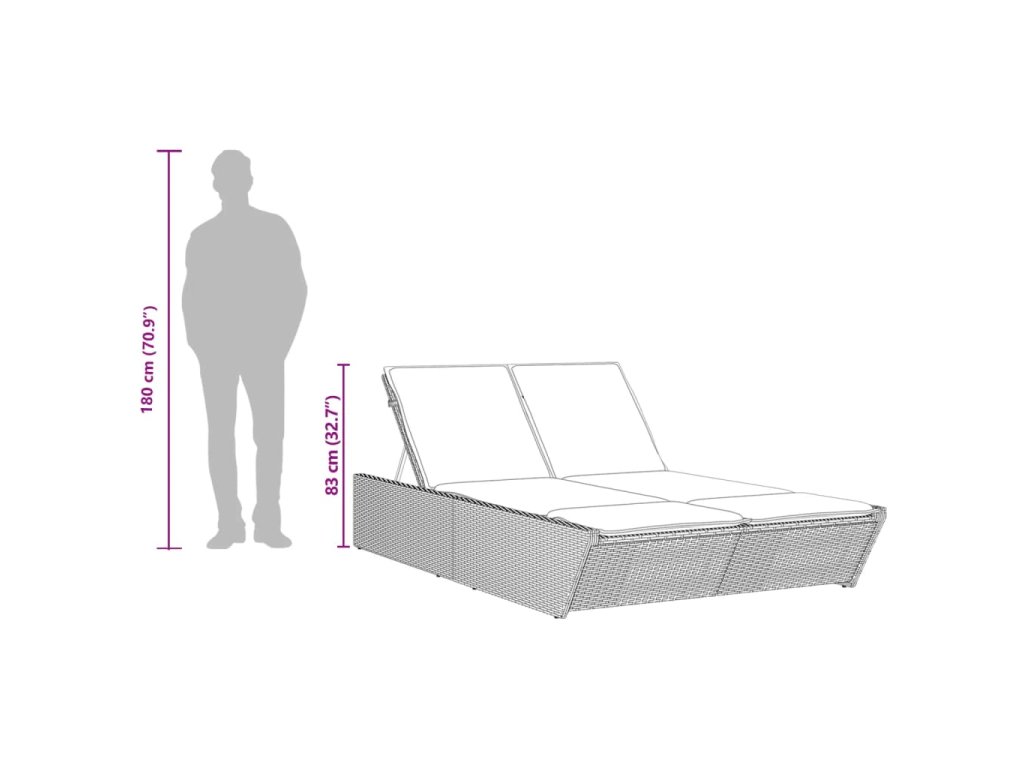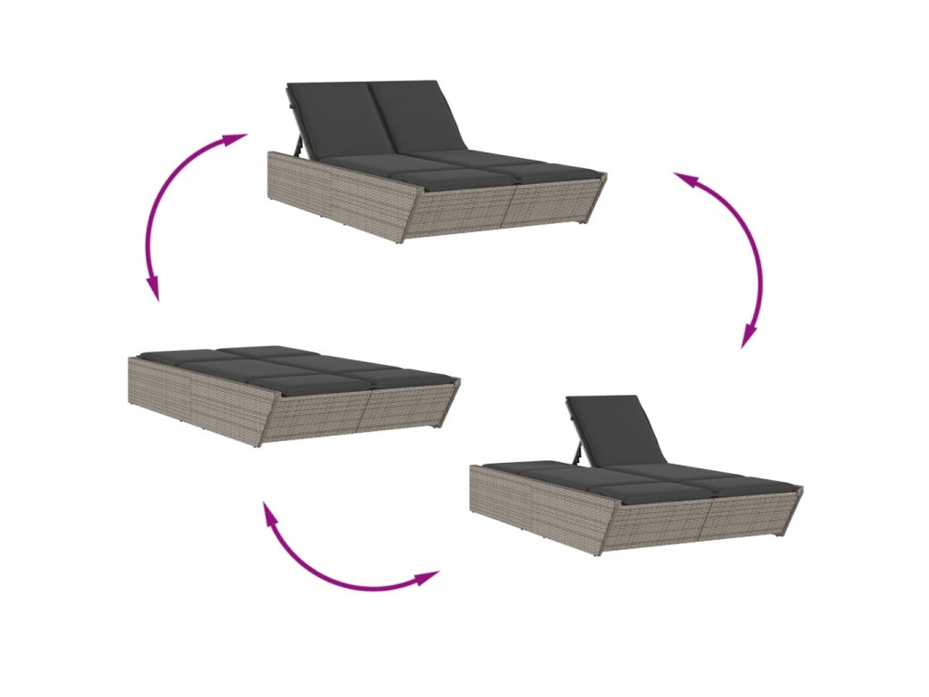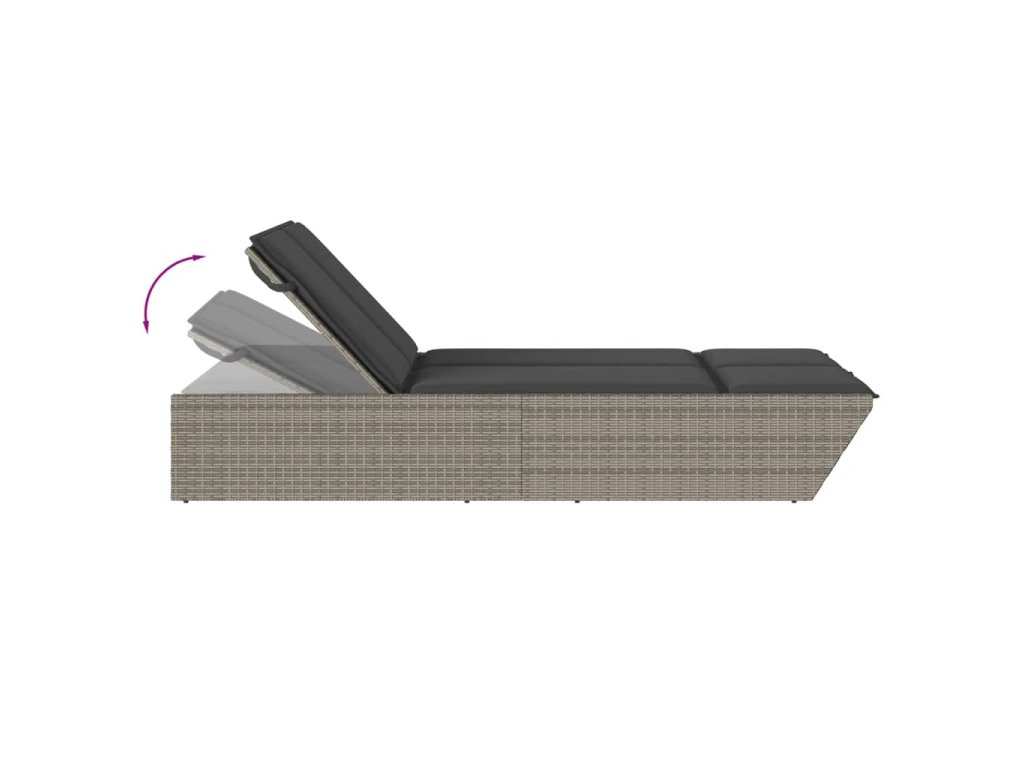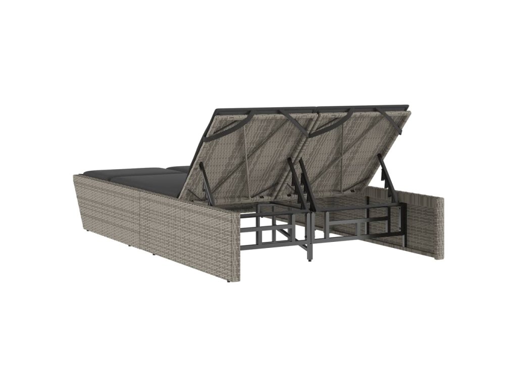 Dvojité lehátko s poduškami šedé polyratan 368181