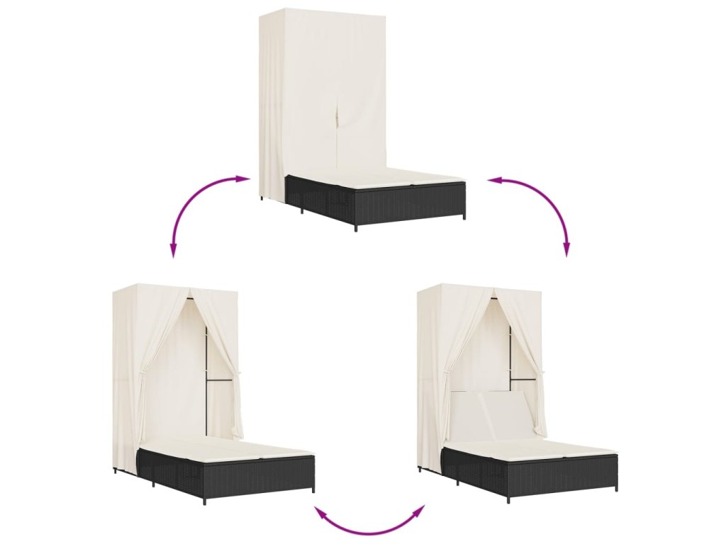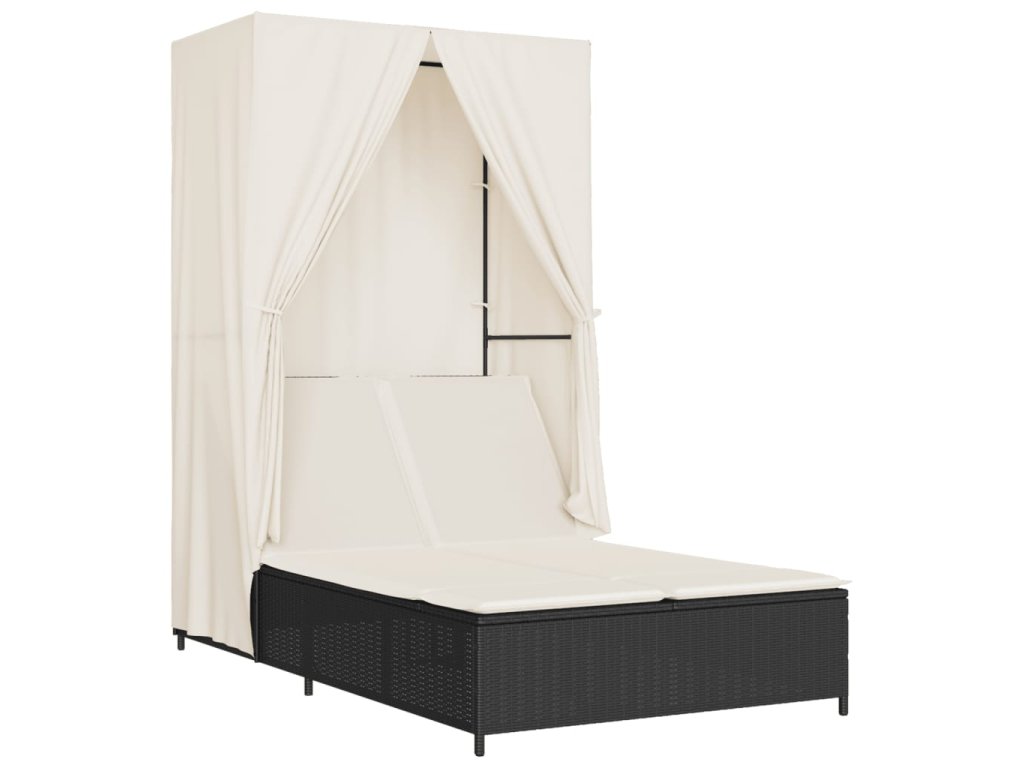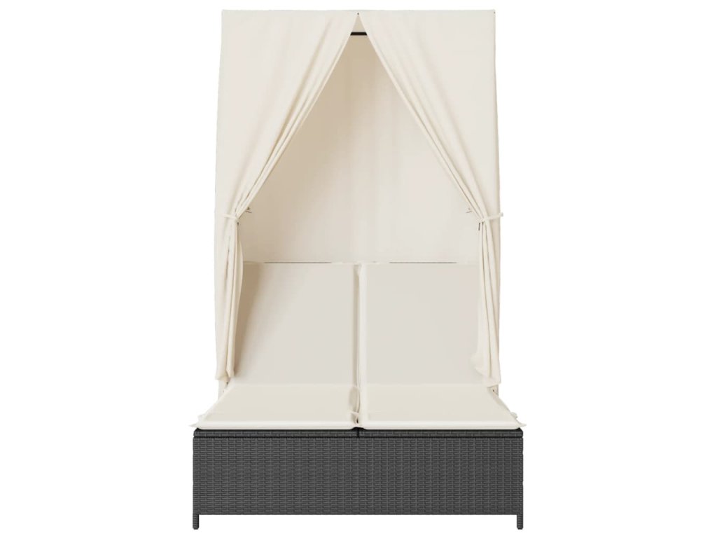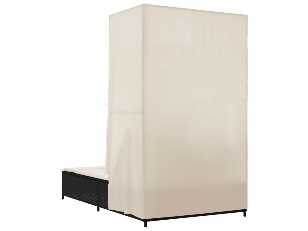 Dvojité lehátko se střechou a závěsy černé polyratan 368099