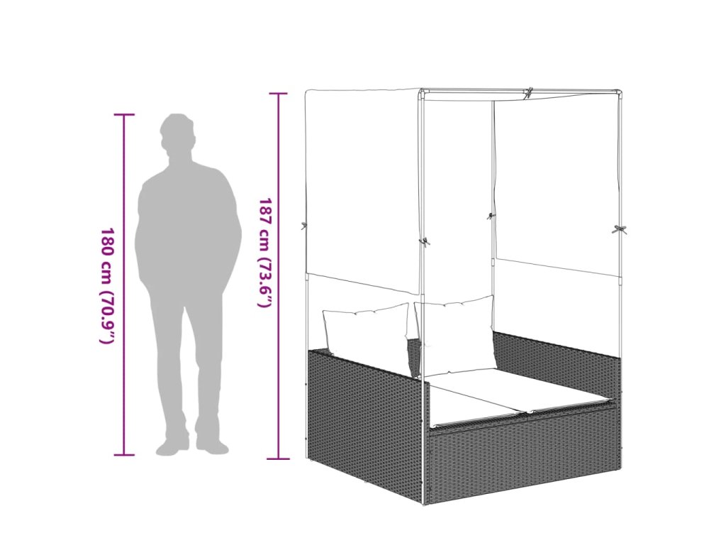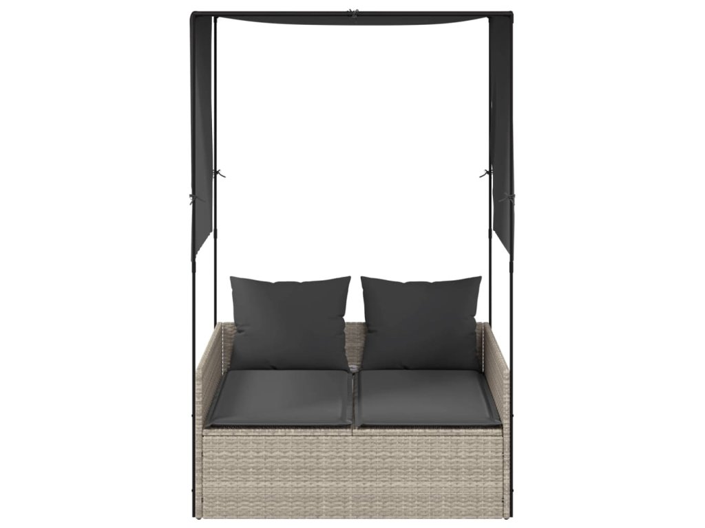 Dvojité lehátko se střechou a závěsy světle šedé polyratan 4002760