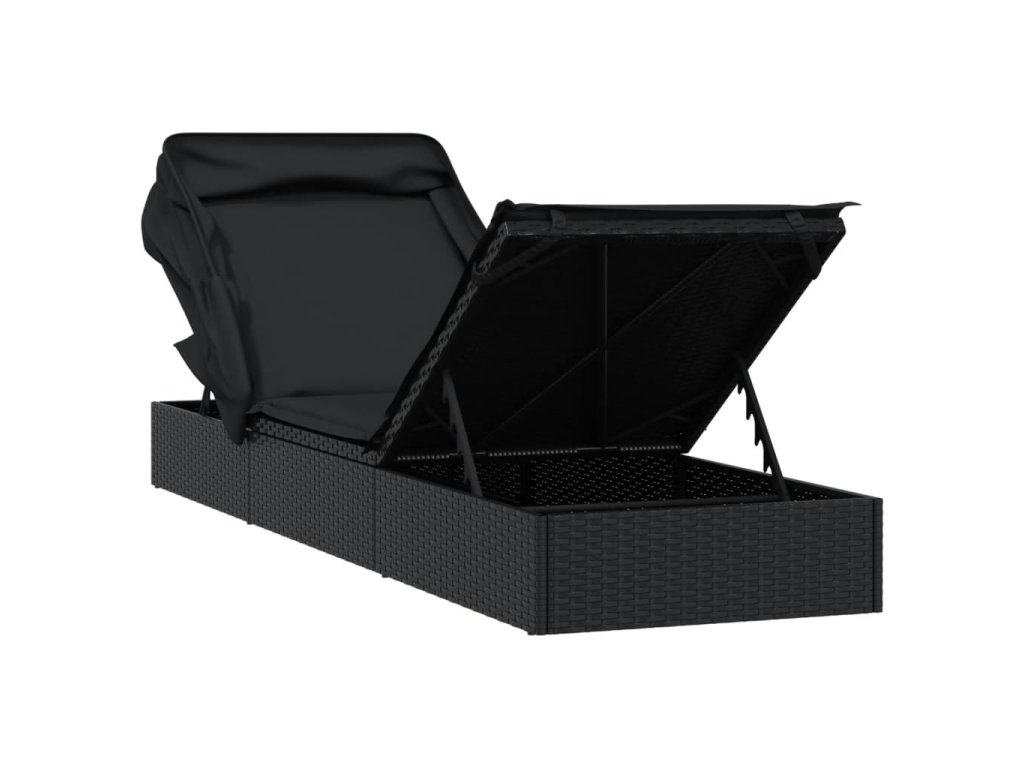 Lehátko se skládací střechou černé 213 x 63 x 97 cm polyratan 319640