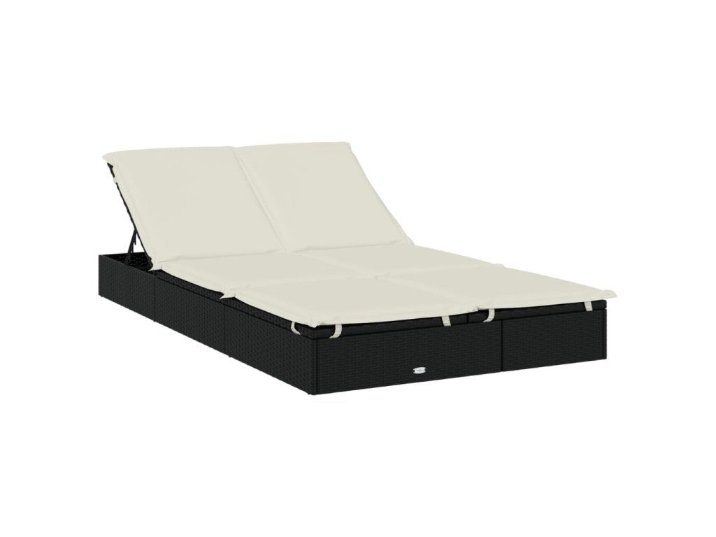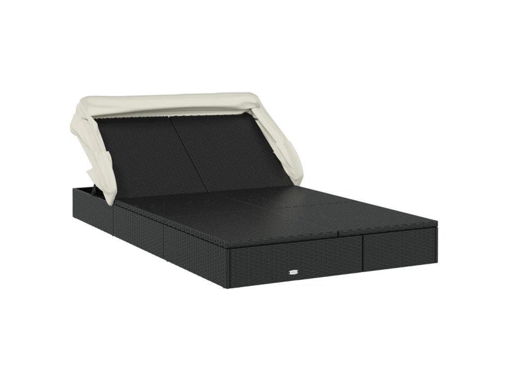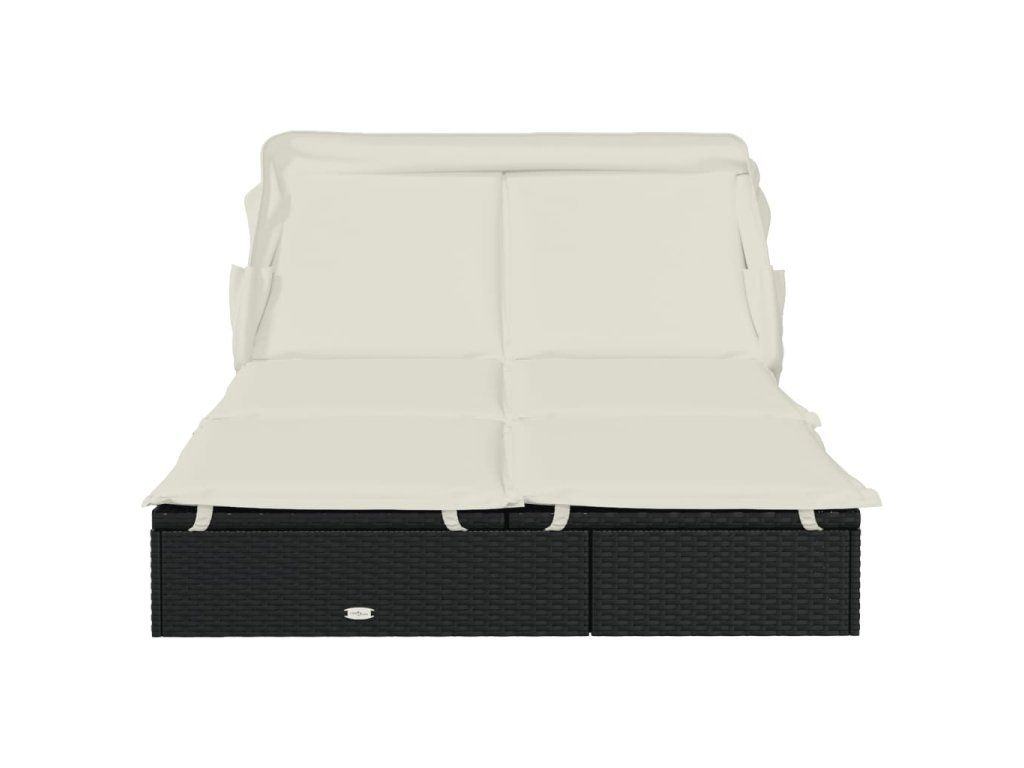 Lehátko se skládací střechou pro 2 černé 213x118x97cm polyratan 319650