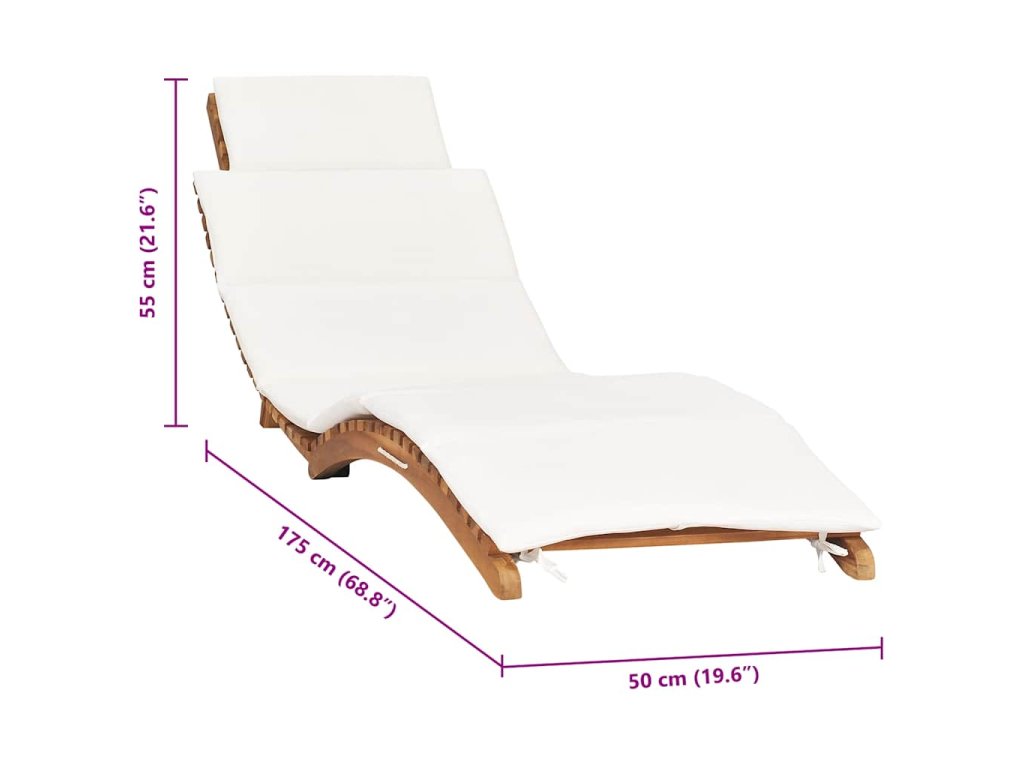 Skládací zahradní lehátko krémově bílé podušky masivní teak 310667