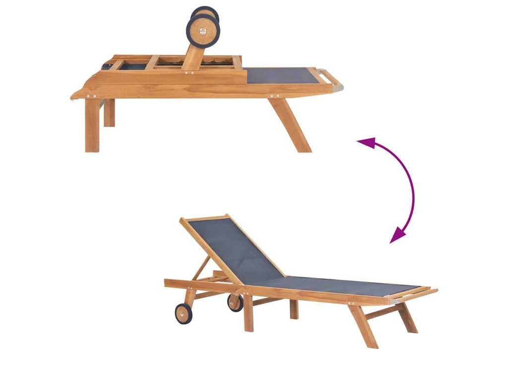 Skládácí zahradní lehátko s kolečky masivní teak a textilen 44668