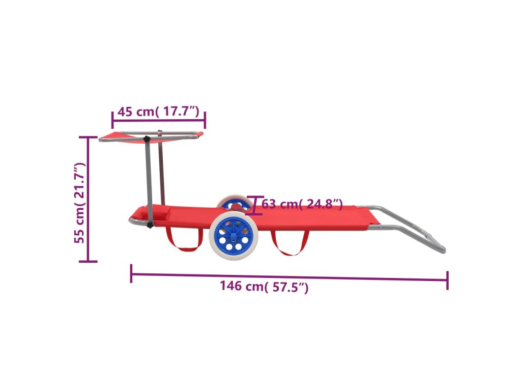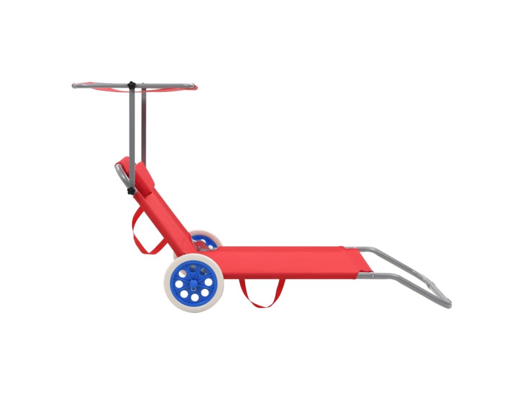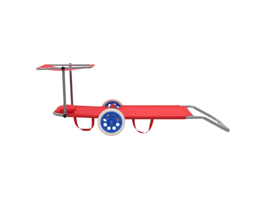 Skládací zahradní lehátko se stříškou a kolečky ocel červené 44324