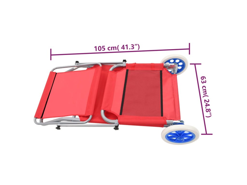 Plážové lehátko je skládací, takže se snadno skladuje, když ho právě nepoužíváte. Je také lehké a disponuje 2 kolečky pro pohodlnou přepravu.