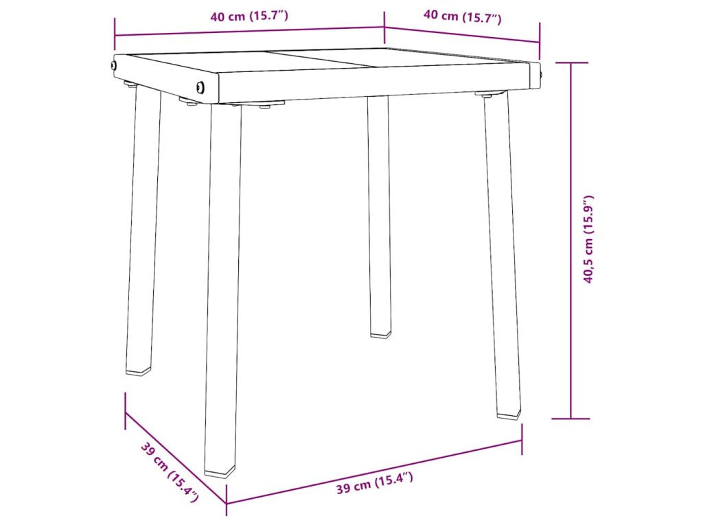 - 1 x stůl: 40 x 40 x 40,5 cm (D x Š x V)