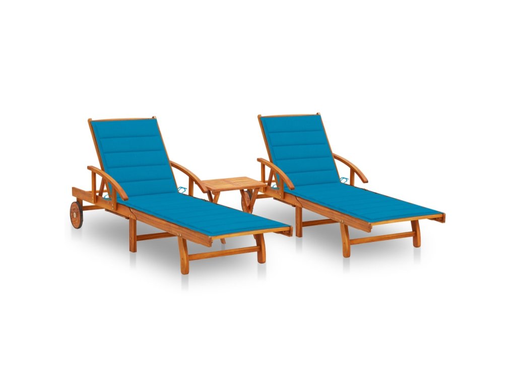 Zahradní lehátka 2 ks se stolkem a poduškami masivní akácie 3077349