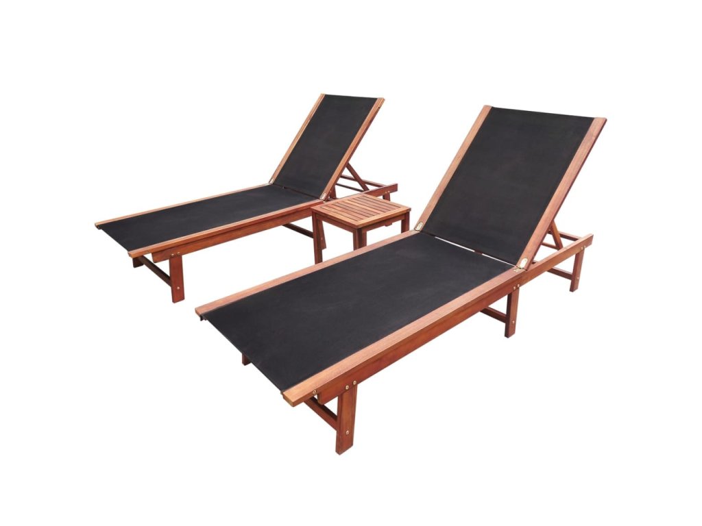 Zahradní lehátka 2 ks se stolkem masivní akácie a textilen 273752