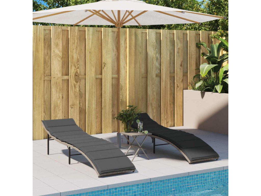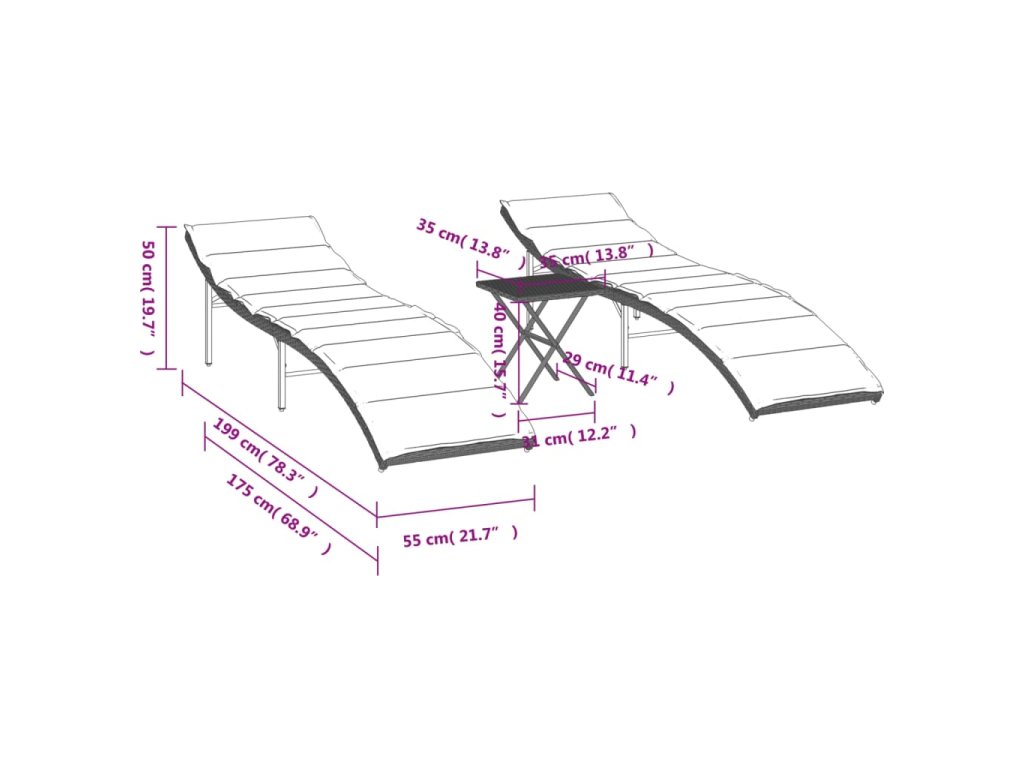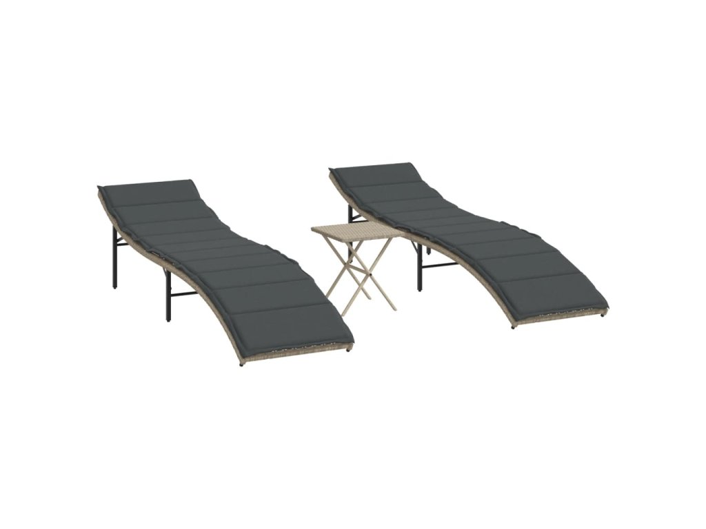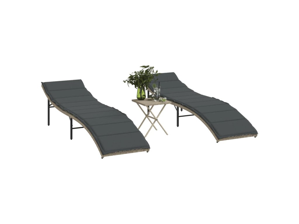 Zahradní lehátka 2 ks se stolkem světle šedá polyratan 368256