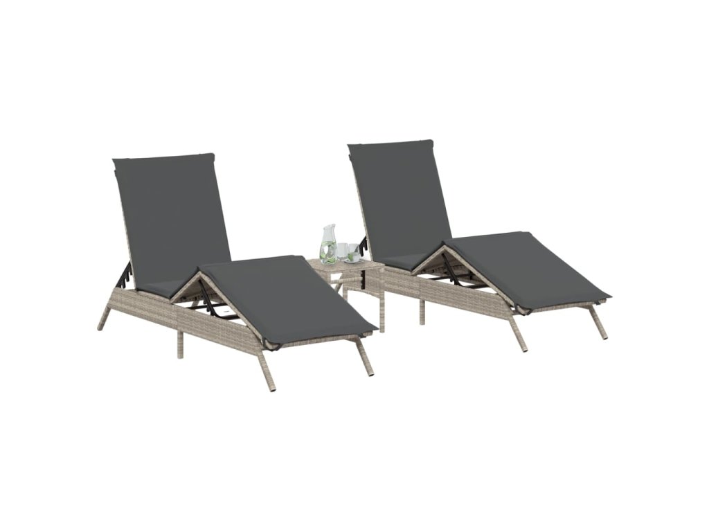 Zahradní lehátka 2 ks se stolkem světle šedá polyratan 4002715