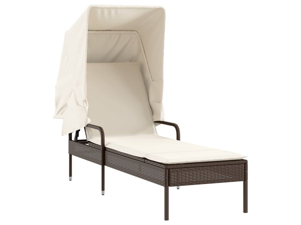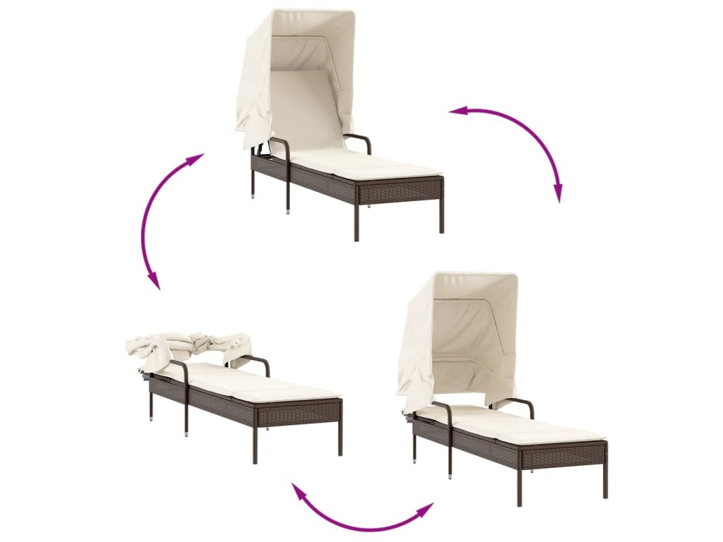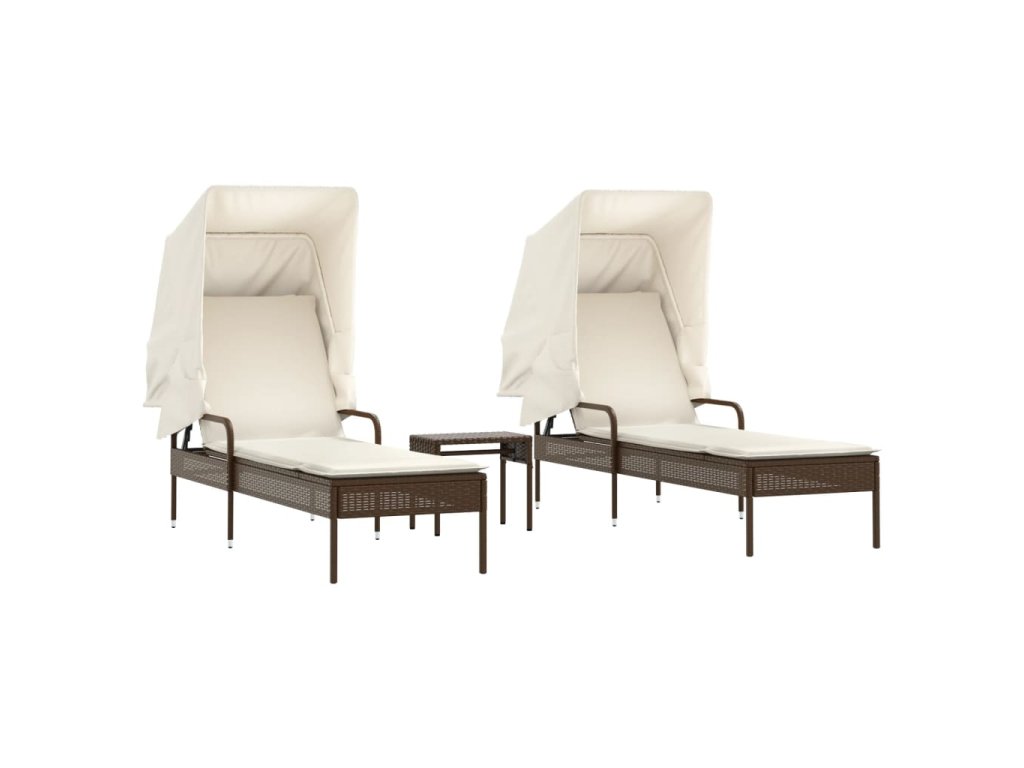 Zahradní lehátka 2 ks se stříškami a stolkem hnědé polyratan 3261570