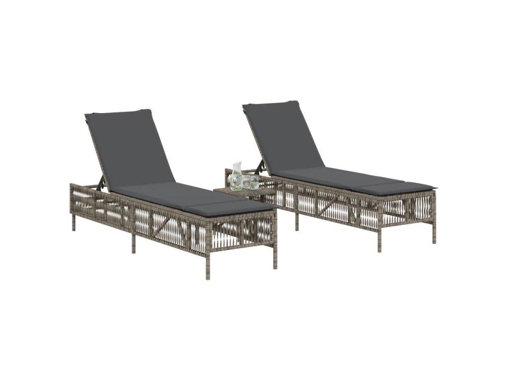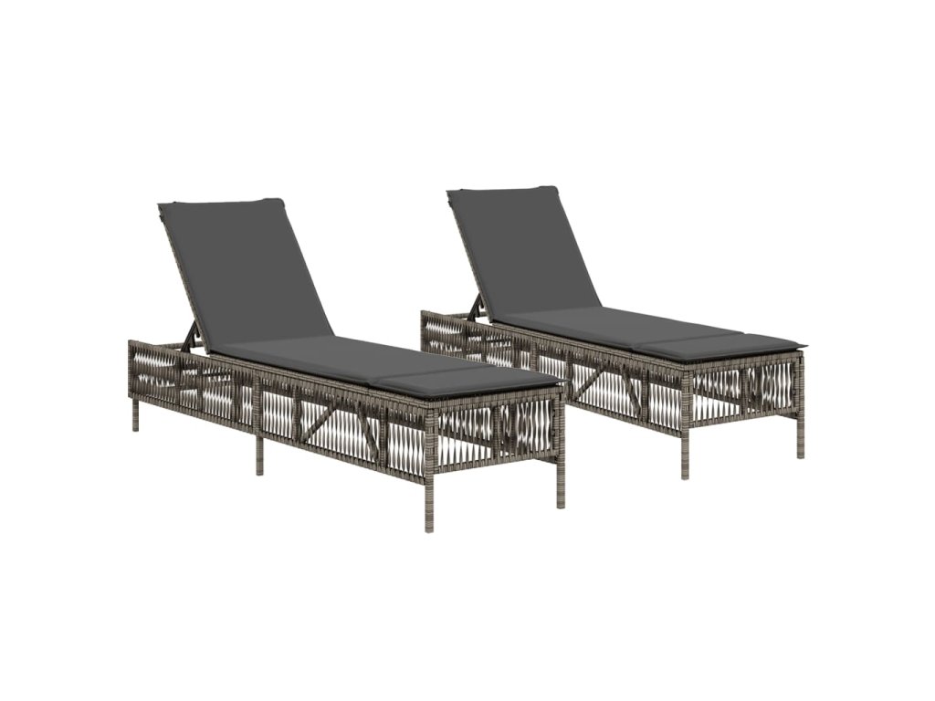 Zahradní lehátka s poduškami 2 ks šedá polyratan 3261598