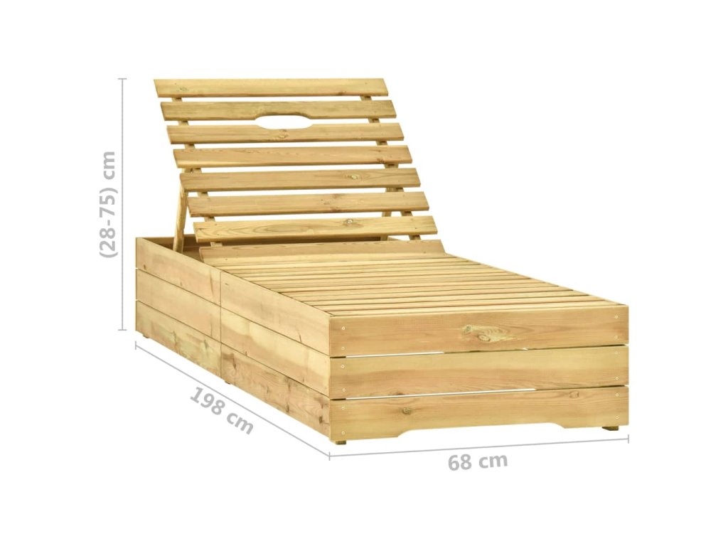 Lehátko je zhotovené z impregnovaného borového dřeva, takže výborně odolává klimatickým vlivům, má dlouhou životnost a dá se snadno čistit vlhkým hadříkem. Výšku opěradla si můžete nastavit dle vlastní potřeby, abyste se mohli co nejpohodlněji uvelebit. Přiložená poduška není jen praktickým doplňkem, má také dekorativní funkci.