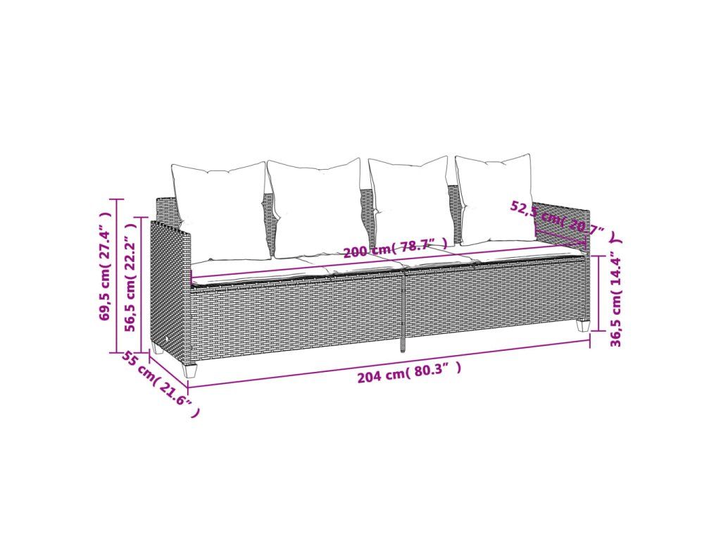 - Rozměry: 204 x 55 x 69,5 cm (Š x H x V)